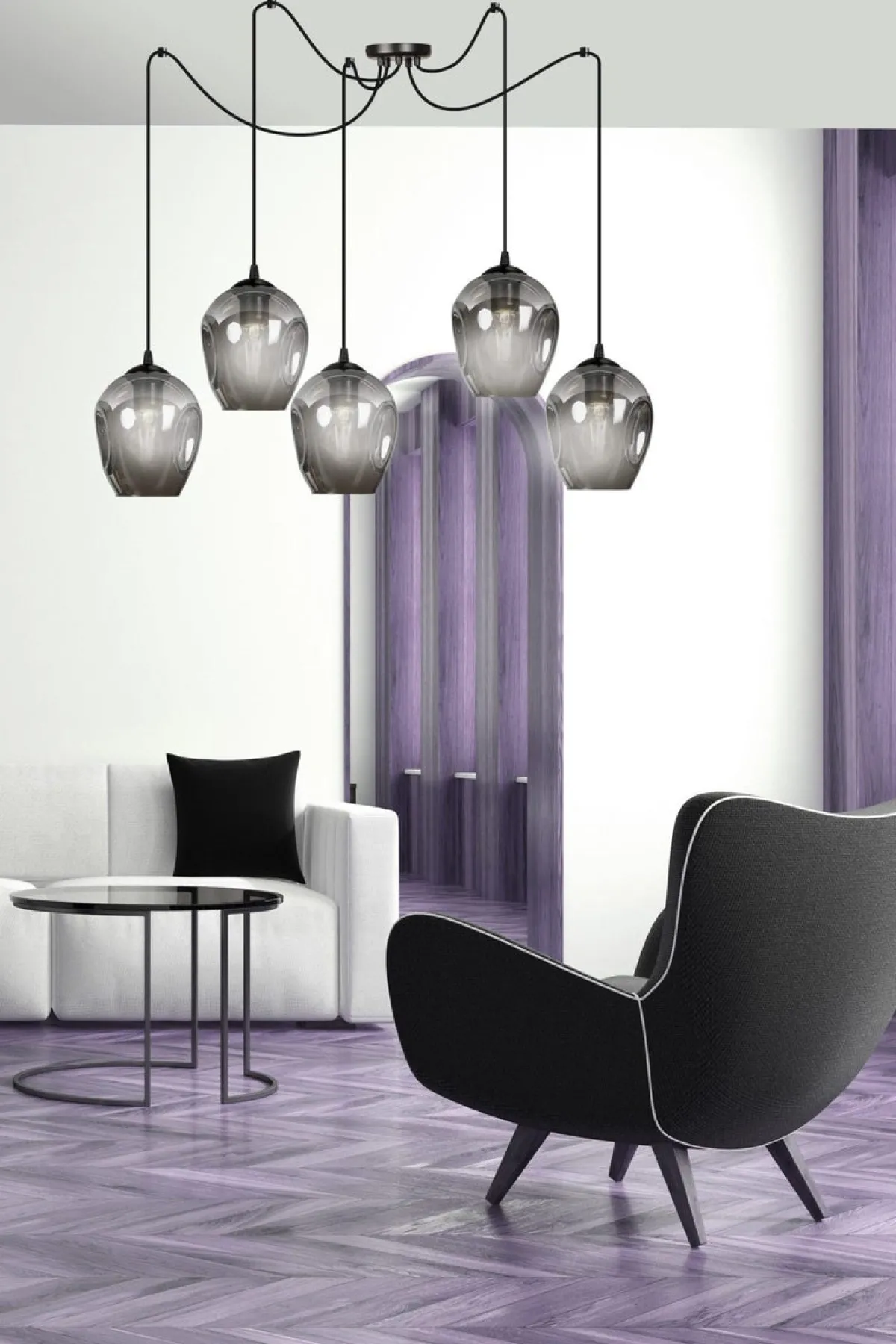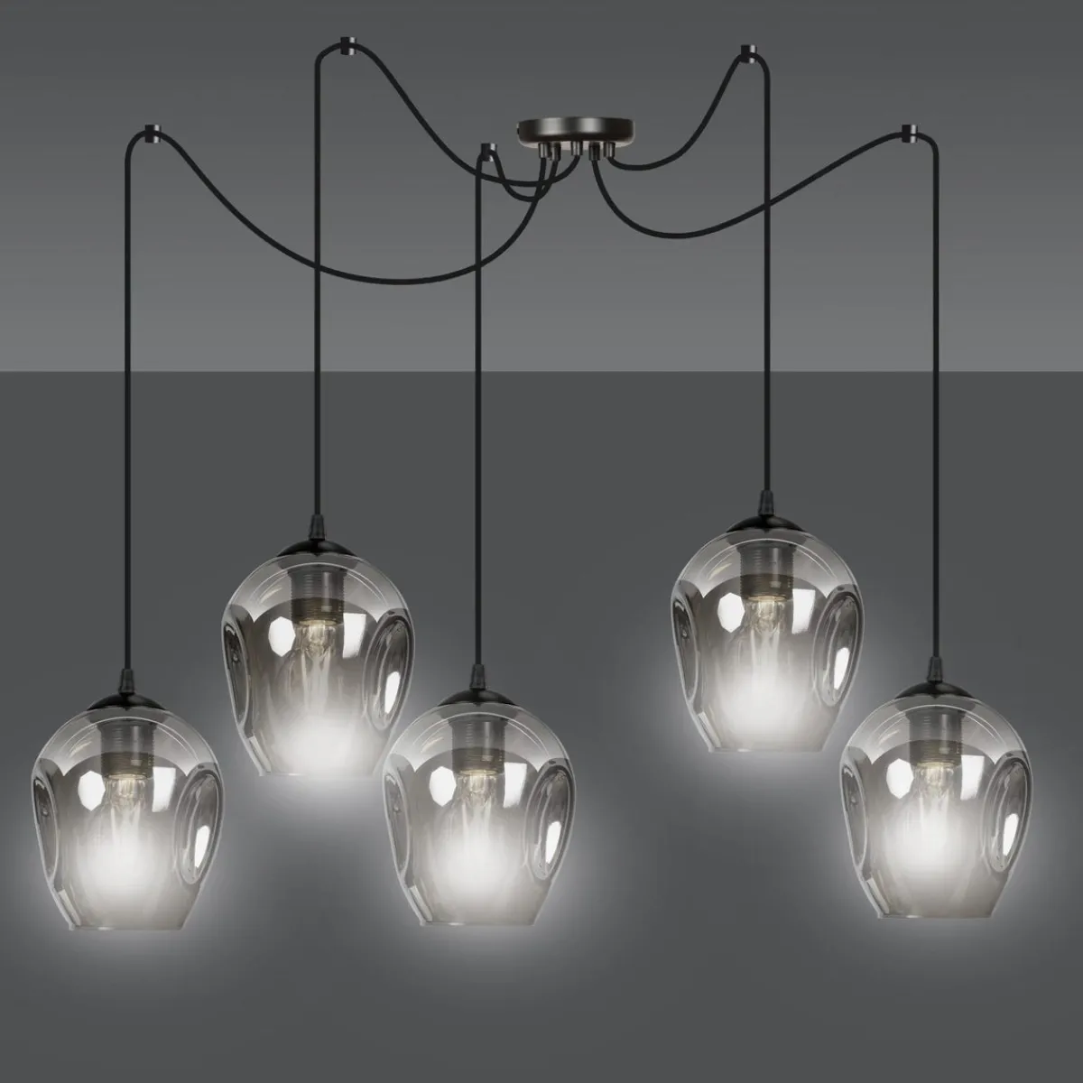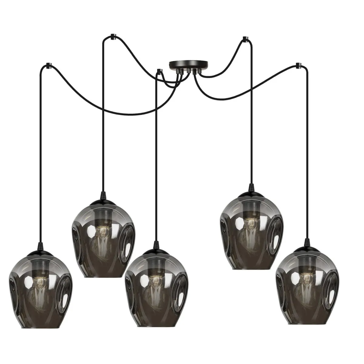 Level er en nydelig pendelserie, som blant annet finnes som 1, 3 eller 5 lys. Modellen er i fargen sort og kan velge mellom klart-, røykfarget- eller amberfarget glass.