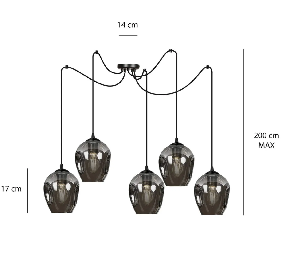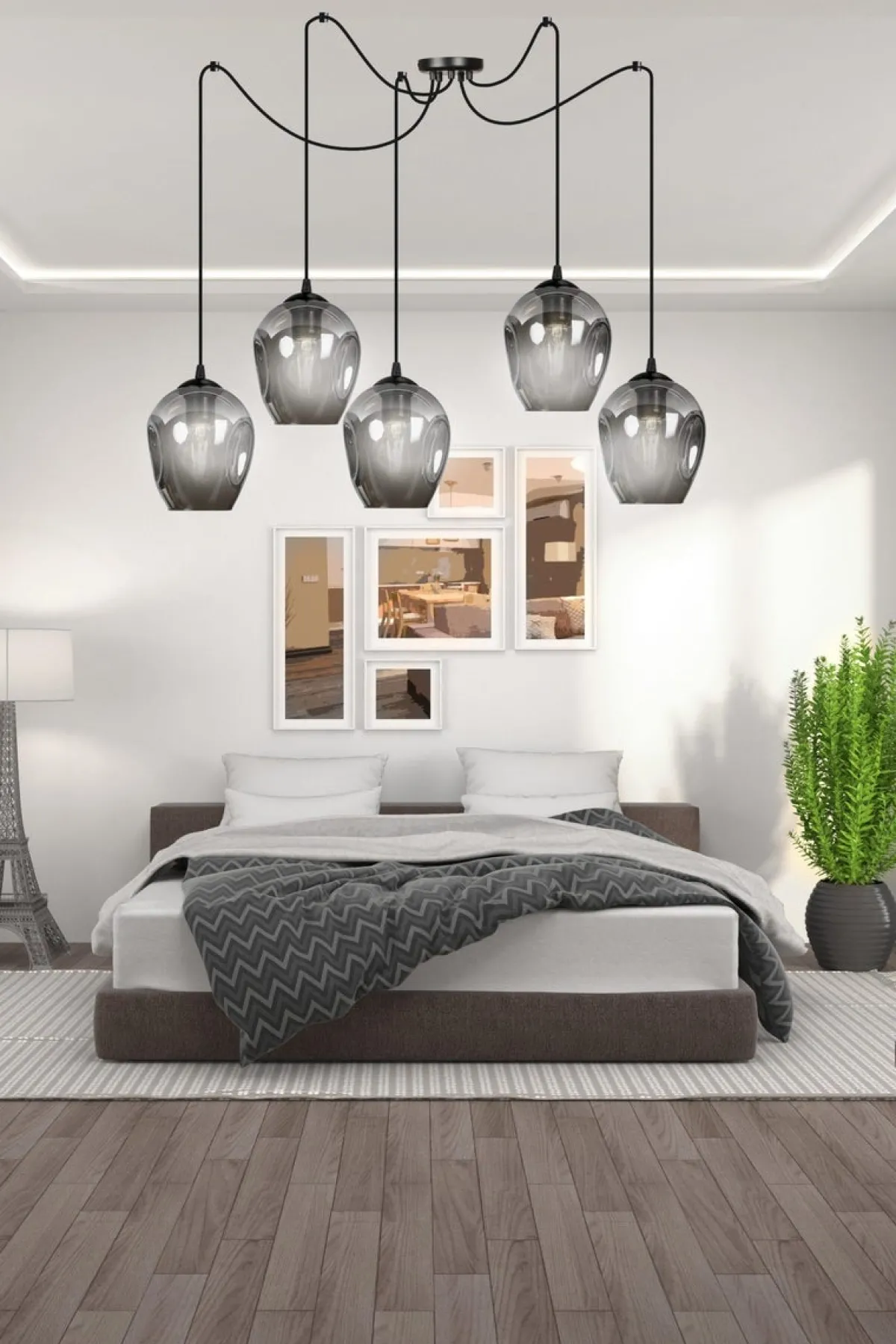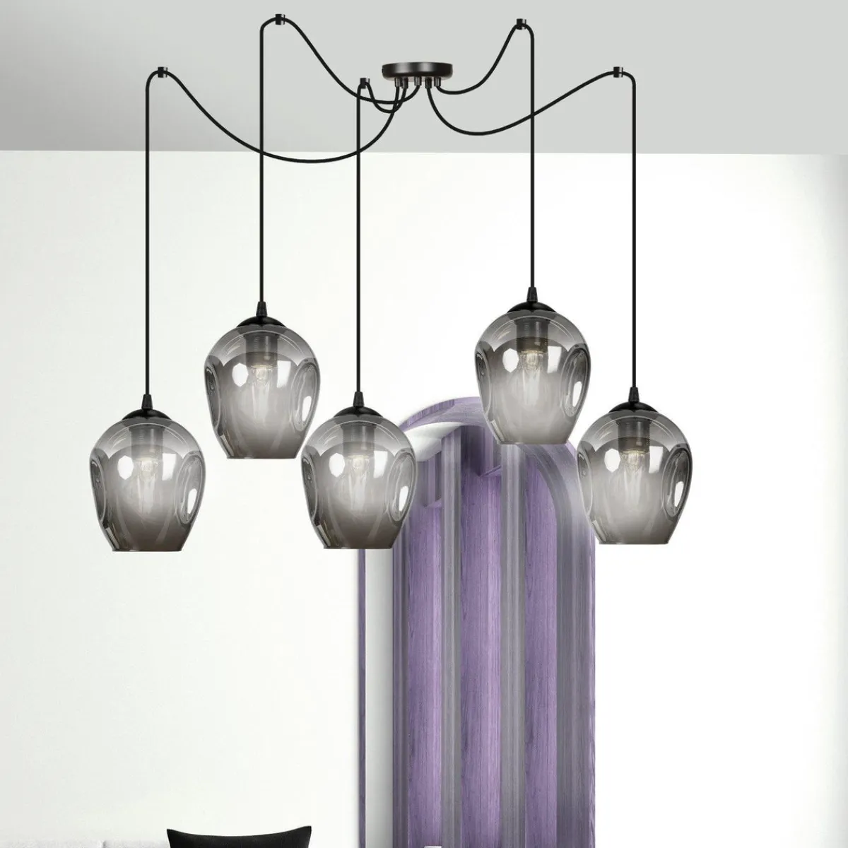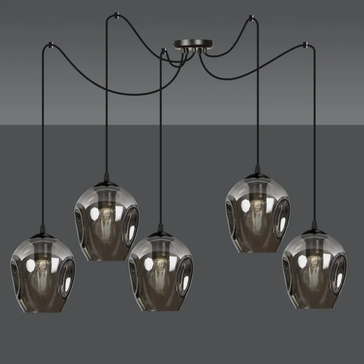 Level er en nydelig pendelserie, som blant annet finnes som 1, 3 eller 5 lys. Modellen er i fargen sort og kan velge mellom klart-, røykfarget- eller amberfarget glass.