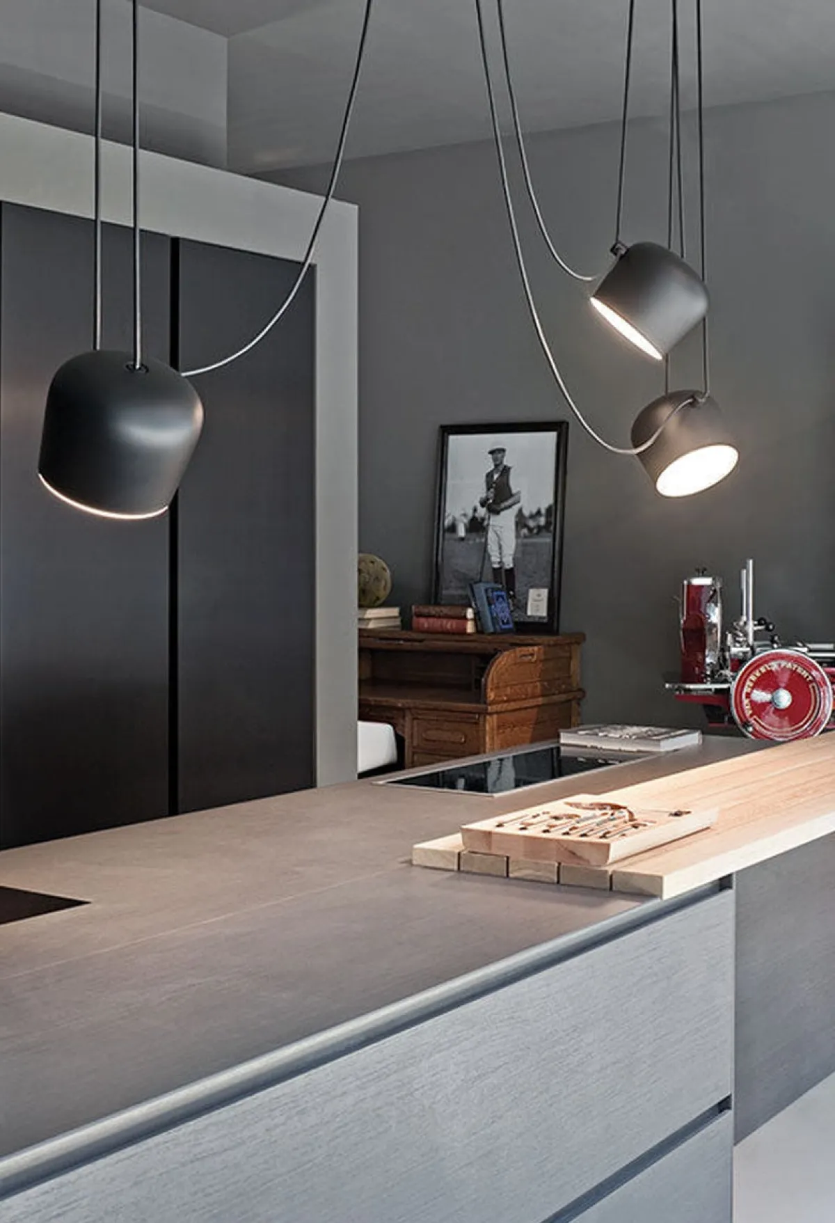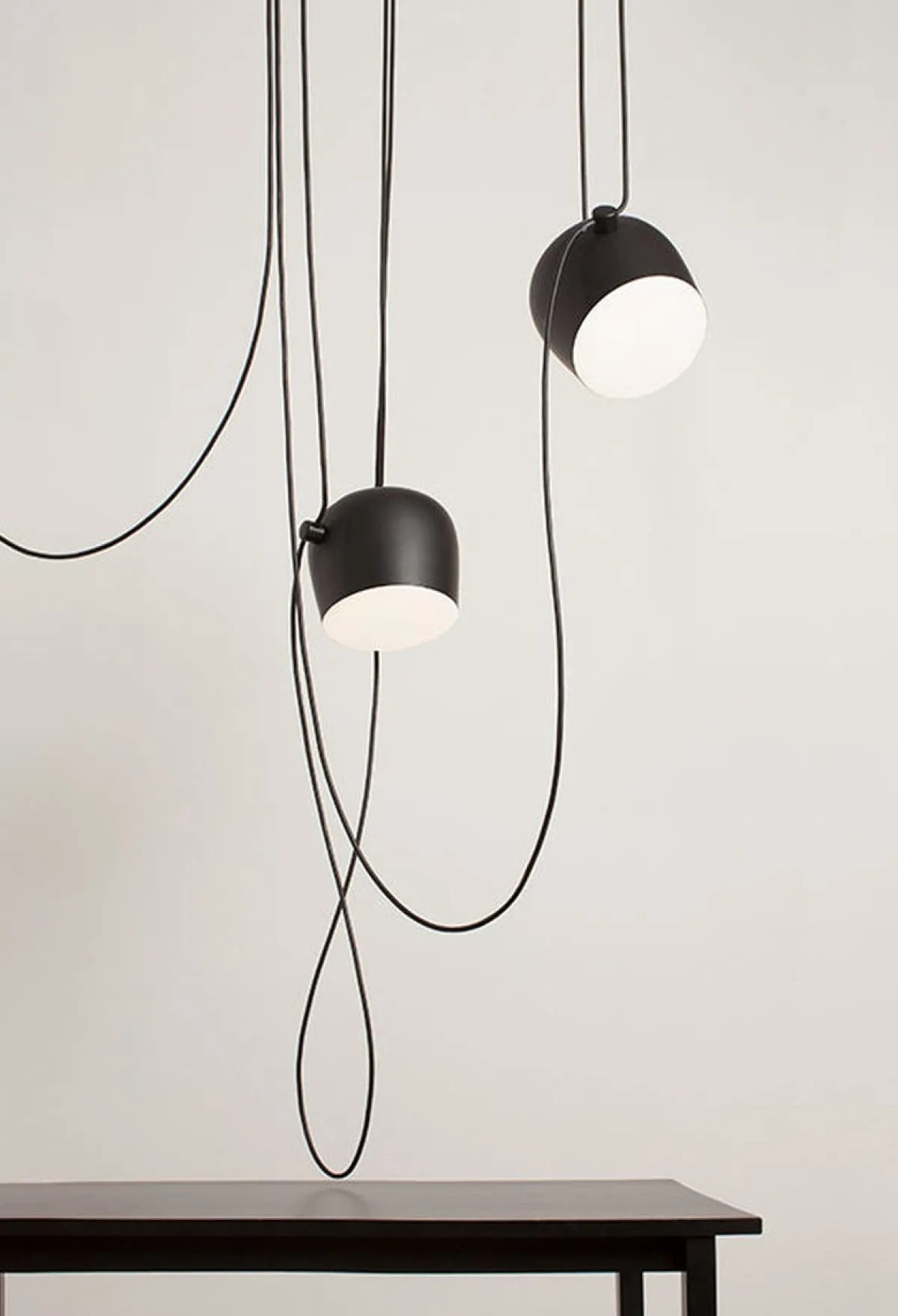 Aim Pendel small er en lekker takpendel med hele 9 meter ledning som en kan være kreativ med. Den har innfelte led dioder som også kan dimmes trinnløst, og en vil da få en lampe som oppfyller alle belysningsbehov. Lampen er fleksibel og kan justeres opptil 3 meter i høyden, samt en kan enkelt stille inn lysretningen. Fin å bruke i kontorlandskap, over et spisebord, i et mørkt hjørne eller i en trappegang. Finnes i flere utførelser. Den 9 meter lange ledningen gjør det enkelt å henge lampen på ønsket sted, strekk den lange ledningen til strømpunktet. Merk at takkopp medfølger for oppheng av 1 stk lampe. Ønsker du å henge flere lamper sammen trenger du å kjøpe en multi-takrosett for 2-5 lamper, se den her.