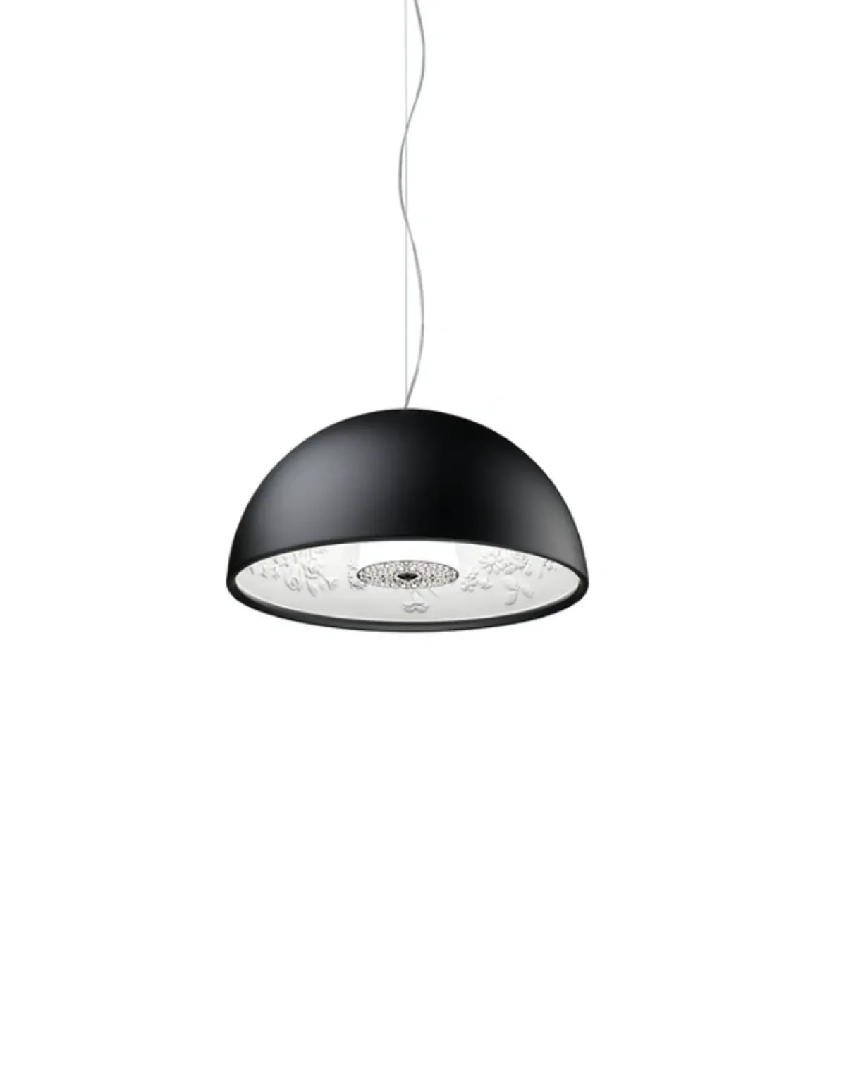 Skygarden fra Flos har i 2021 blitt lansert i en mindre størrelse, 40 cm. Lampen gir godt med lys og er fin å dimme. Lyskilden ligger skjult inni en opalhvit kuppel, slik at du kan ha mye lys i uten å bli blendet. Gir et nedadrettet lys.