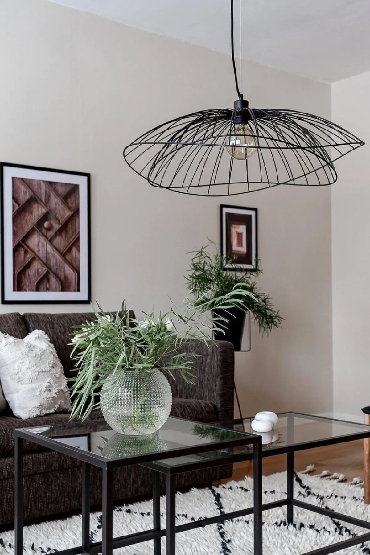 Velg hvordan du vil at designet på taklampen skal se ut, du kan ordne de to skjermene oppå hverandre eller inni hverandre for å få en lavere pendel.