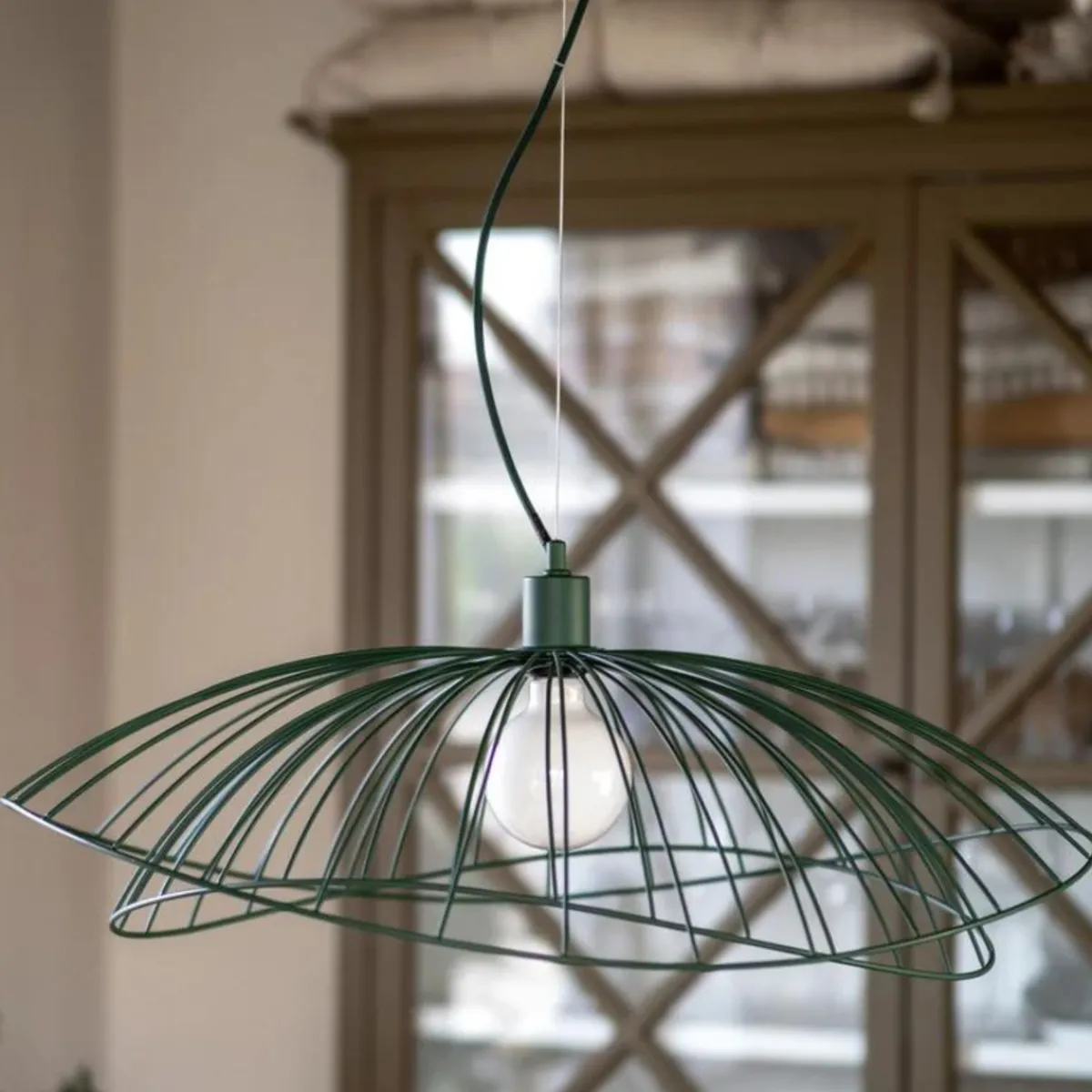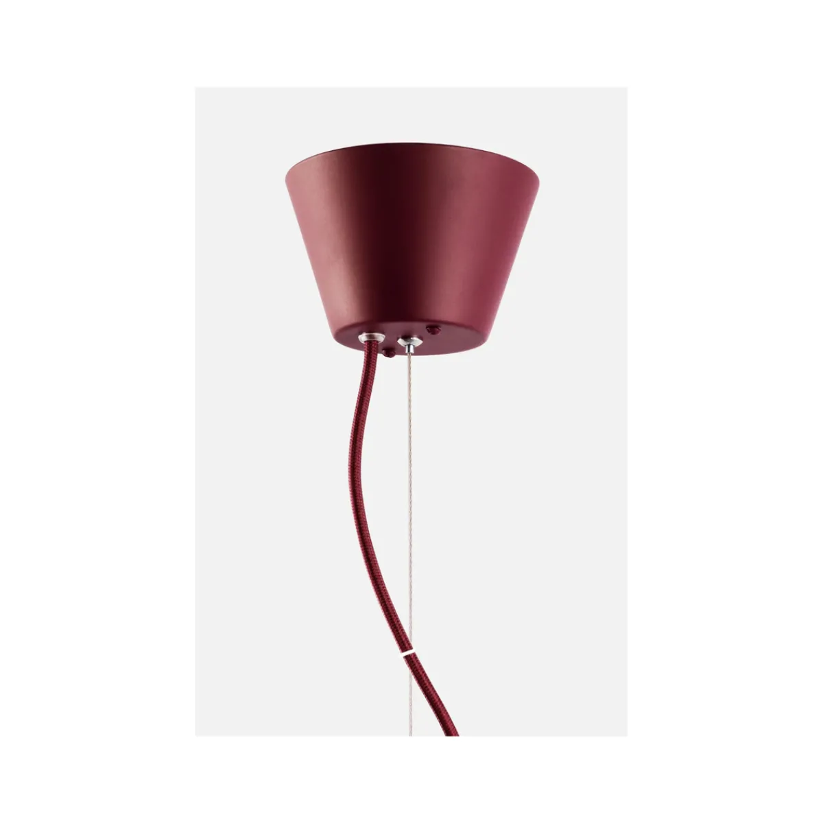 Lampen har en 120 cm lang matchende tekstilkabel med ledning og en matchende takkopp laget av metall. Lampeplugg for taktilkobling selges separat.