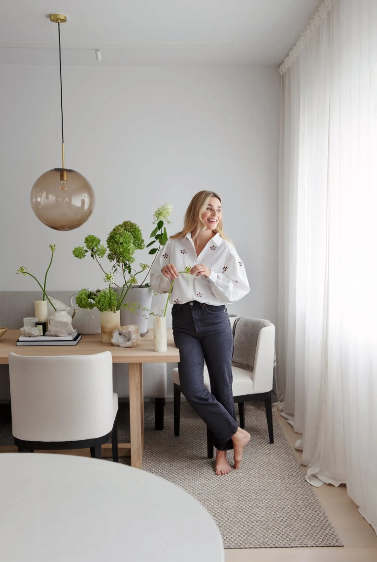Hadeland lampene er her avbildet hjemme hos Camilla Pihl. Det er 2 stk 40 cm i kakao taklamper som henger over spisebordet til Camilla Pihl.