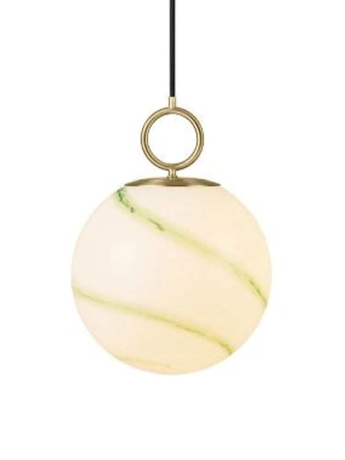 Estetisk og materialforskning resulterer i denne lampefamilien, som har et opalt glass med marmordekor kombinert med messingfinish.