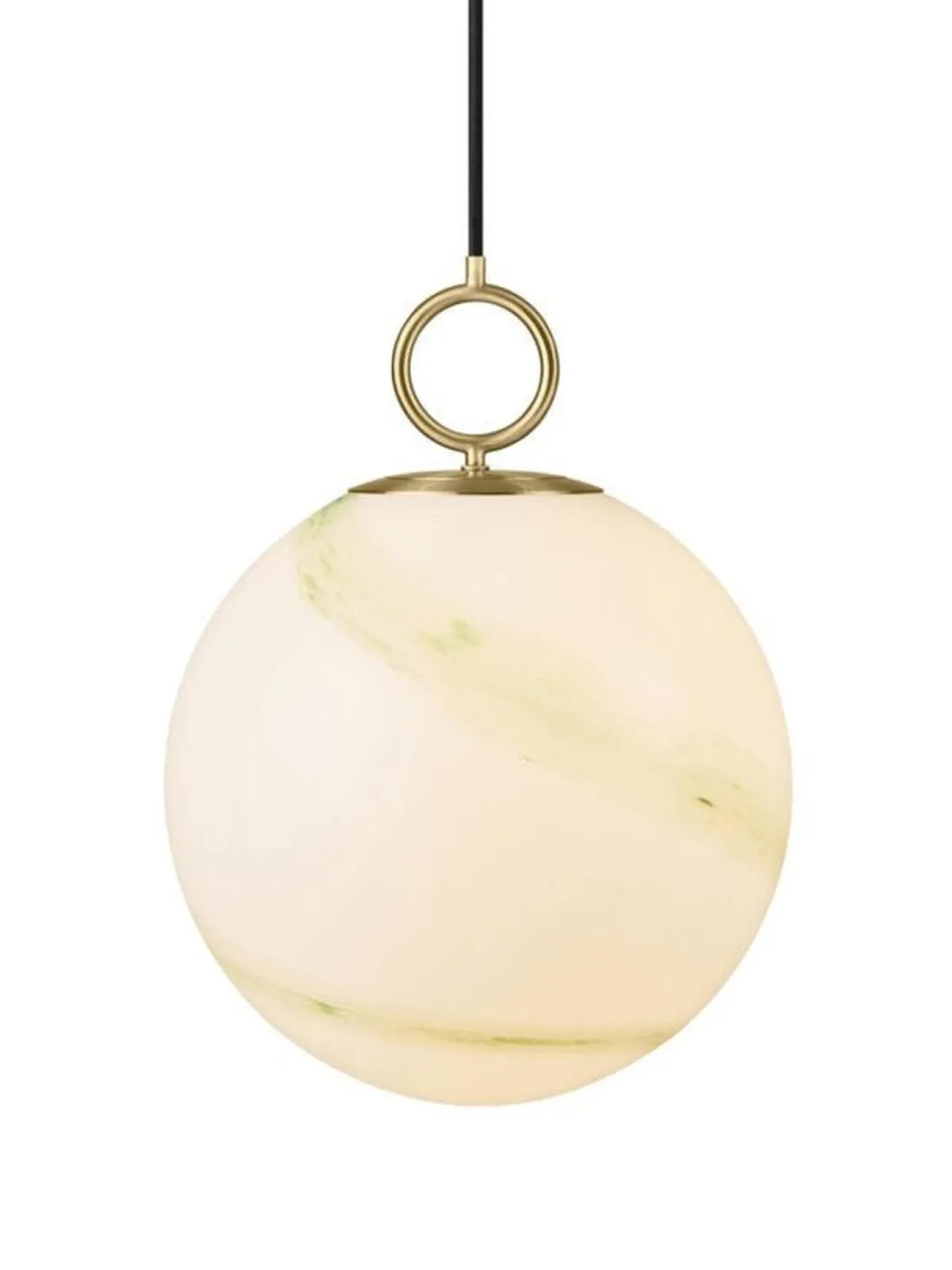 Estetisk og materialforskning resulterer i denne lampefamilien, som har et opalt glass med marmordekor kombinert med messingfinish.