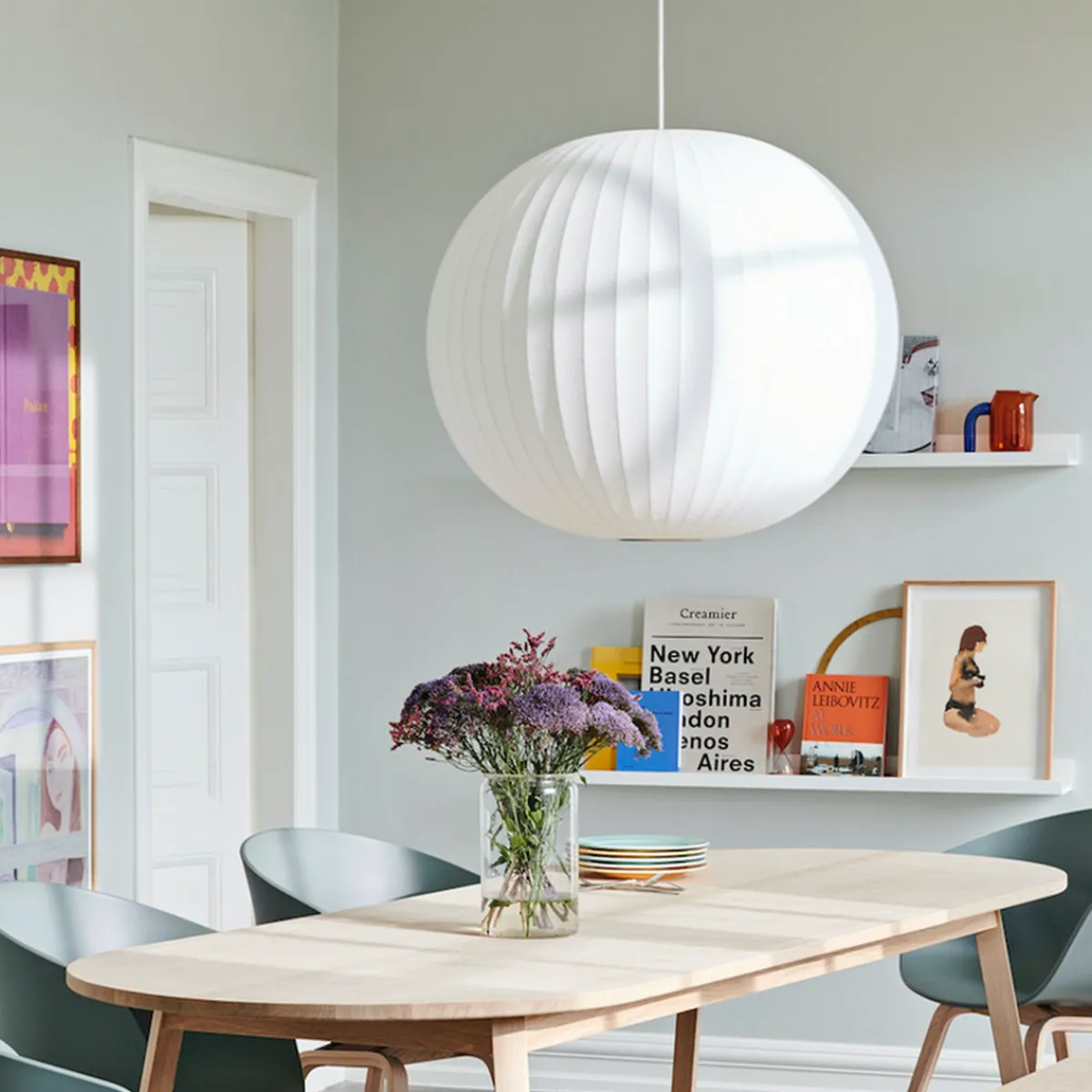 Nelson Ball bubble pendel er en vakker lampe som gir fantastisk myk glød til rommet. Lampen har en myk form er tilgjengelig i tre størrelser og i flere former.