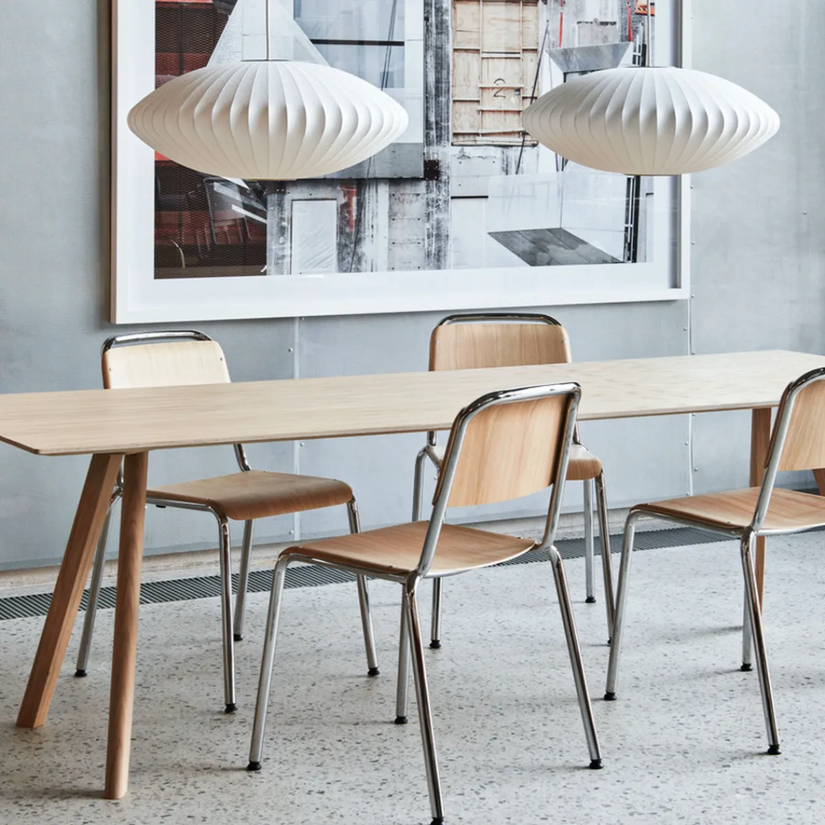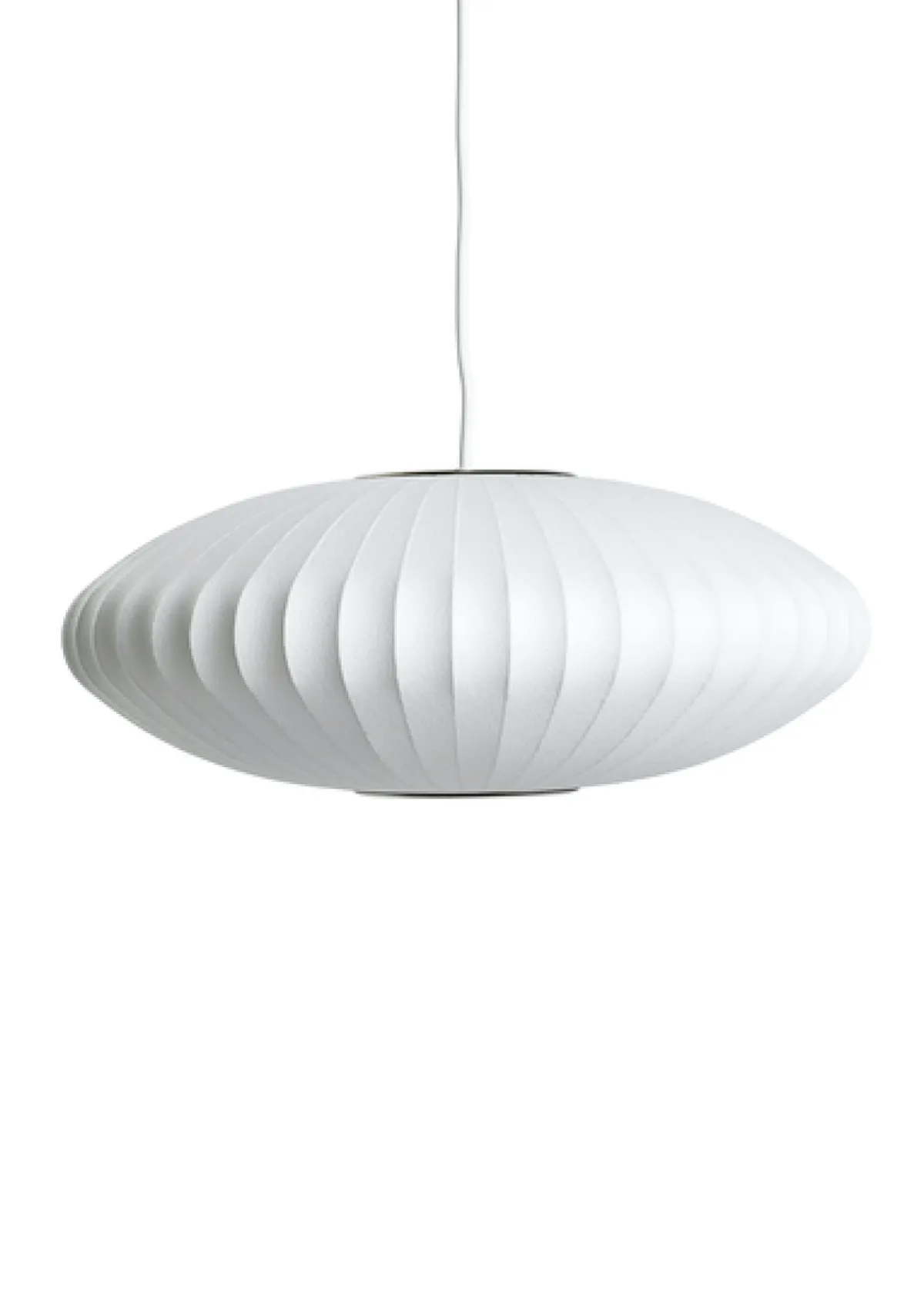 Nelson Saucer Bubble Pendant sin brede overflate sprer ett mykt og behagelig lys inn i ethvert interiør. Lampen svever delikat i rommet og blir ett fint element, den er lett og plassere med sine mange størrelser og passer inn i ethvert hjem, en tidløs design. George Nelson designet Bubble Lamp-serien opprinnelig i 1952. Lampen består av en stålkonstruksjon hvor det er sprøytet et tynt lag plast over. Den hvite skjermen sørger for at lyskilden ikke blender, og pendelen er perfekt over et spise- eller sofabord. Det er også en lampe som henger fint midt i rommet eller i stukkaturen og gir god grunnbelysning.