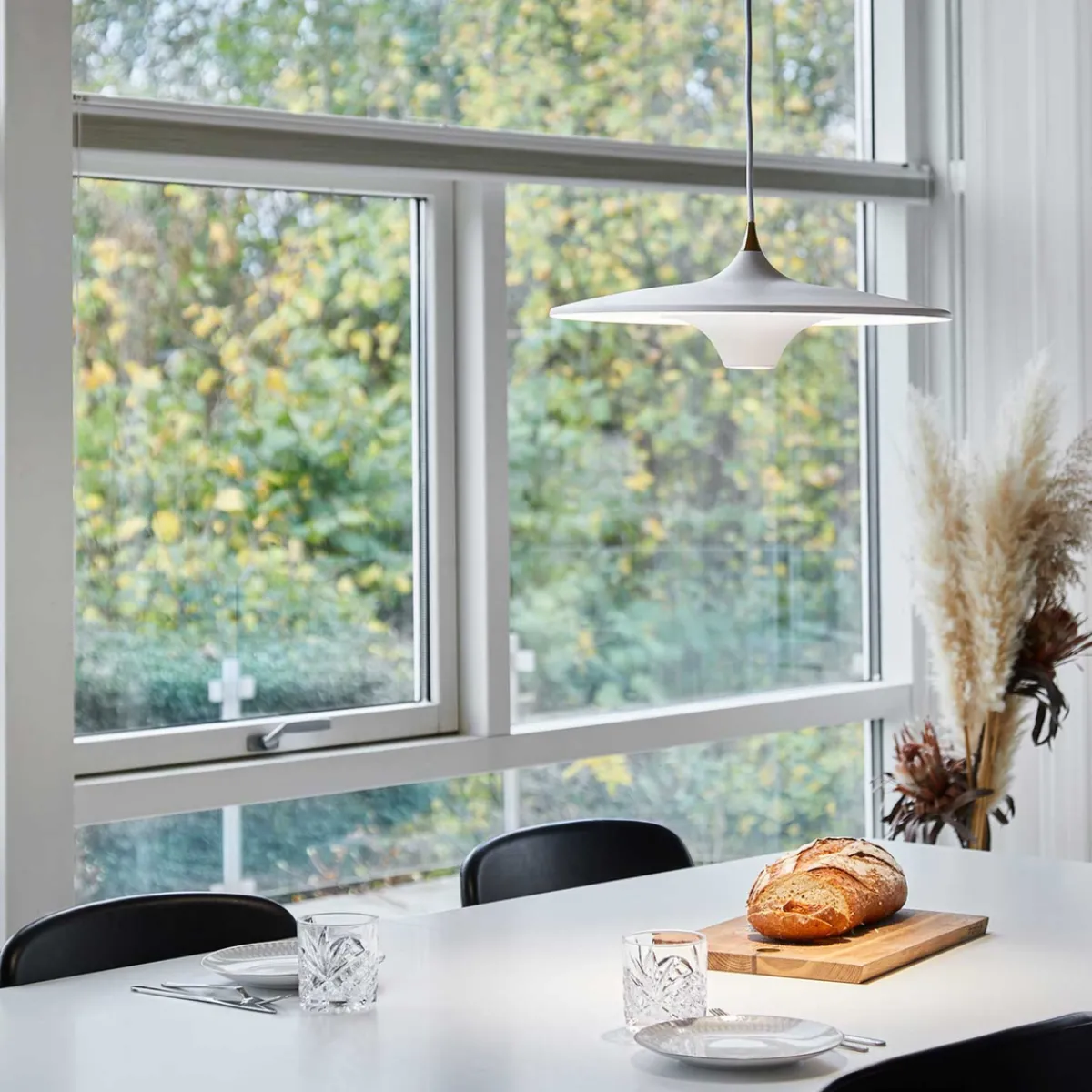 Moja 42 har et lett og nesten svevende design, noe som betyr at hengelampen blander seg godt inn i omgivelsene sine. Med effektiv, integrert LED-belysning klarer likevel hengelampen å skape godt lys – både direkte og indirekte. Den nedtonede designen og den funksjonelle belysningen kan derfor enkelt skape en vakker og behagelig atmosfære.