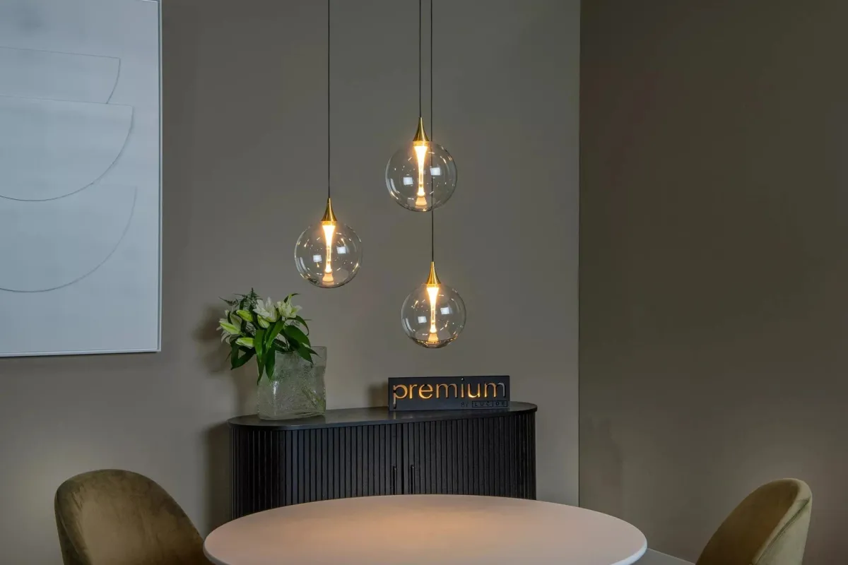 Synes du noen ganger det er vanskelig å holde alle ballene i luften? Overlat det til Gisela, en hengende lampe som består av forskjellige pendler med klare glasskuler, som hver kan justeres i høyden. De integrerte LED-pærene kan dimmes og sprer varmt, hvitt lys. Denne tidløse, sfæriske designen fungerer godt i både klassisk interiør og moderne hjem. Enten du henger dem i samme høyde eller lekende fallende: du vil alltid score med denne elegante hengende lampen.