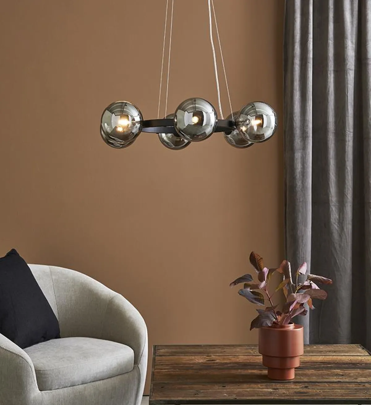Circle er en dekorativ takpendel som finnes i to ulike farger. Sort med røykfarget kuppel og gullfarget base med røykfarget kupler.