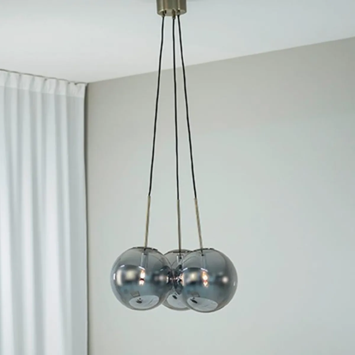 Flott og tidløs pendel i røykfarget fra marksløjd med messing farget detaljer.