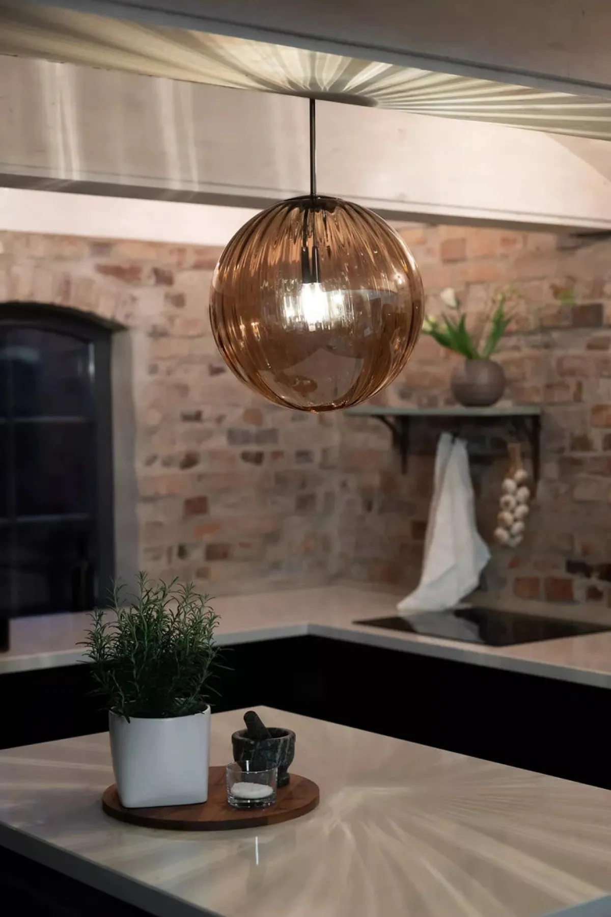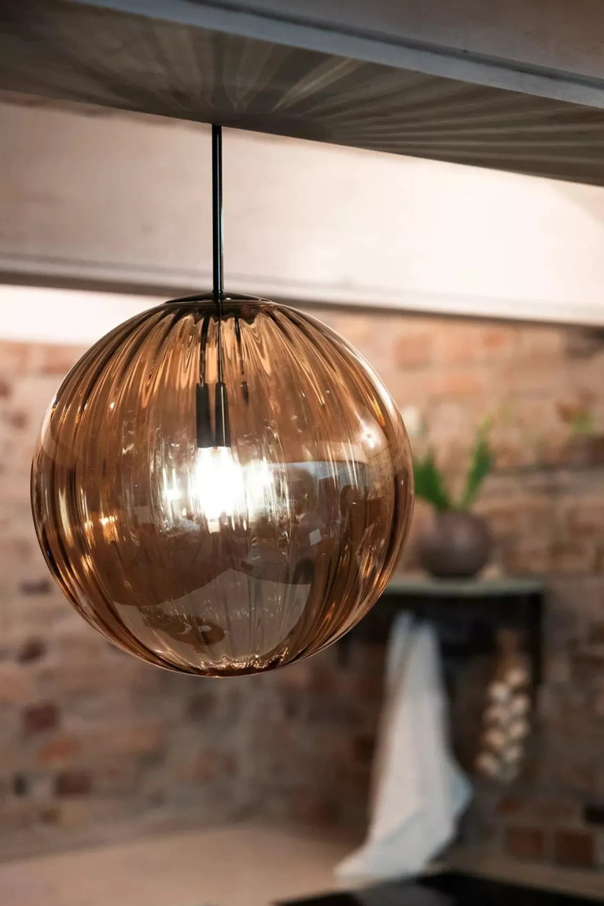 Fengari er en nydelig pendel med kuppel i glass, velg mellom røykfarget eller amberfarget glass.