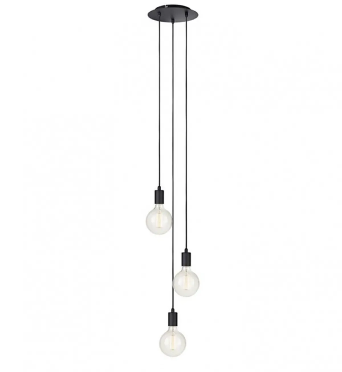 Sky-taklampe med rund takplate i metall. Sky-taklampe med rund takplate i metall, hvorav du kan justere lengden på de forskjellige ledningene, etter eget ønske. Benytt gjerne dekorpærer for et ekstra stilfullt touch.