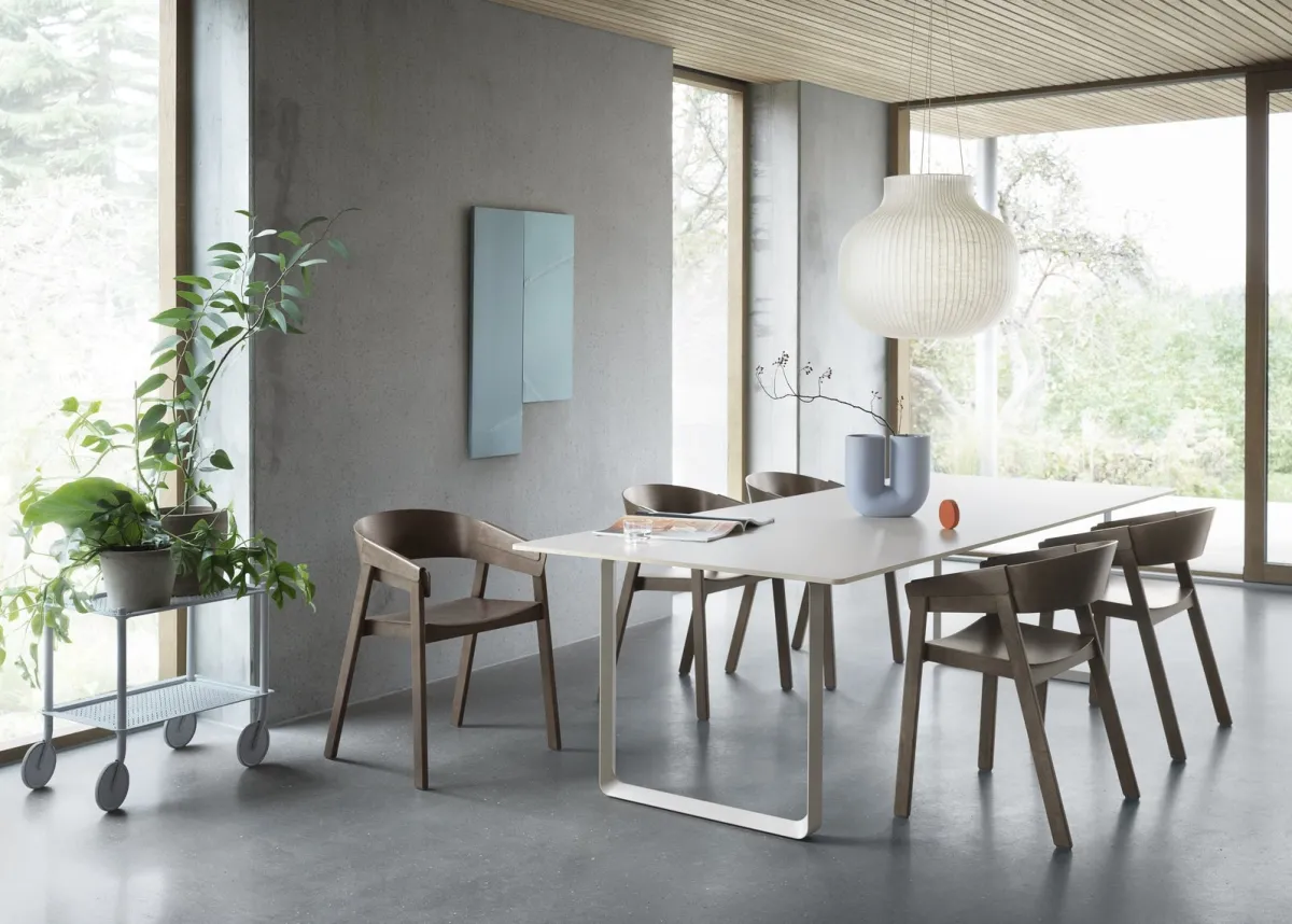 Strand Pendant Lamp fra Muuto er designet med myke, lekne former for et moderne uttrykk. Designet på taklampen gir både diffus belysning og direkte belysning. Designet er laget i et sprøytet kokong-materiale som består av bittesmå tråder for en kompleks og spennende struktur, som sammen med sin moderne form gir Strand Pendant Lamp et nesten skylignende utseende. Kokong-materialet filtrerer lyset og gir en varm og behagelig glød. Strand Pendant Lamp henger lett i rommet, og gir komfort og harmoni til ethvert rom.