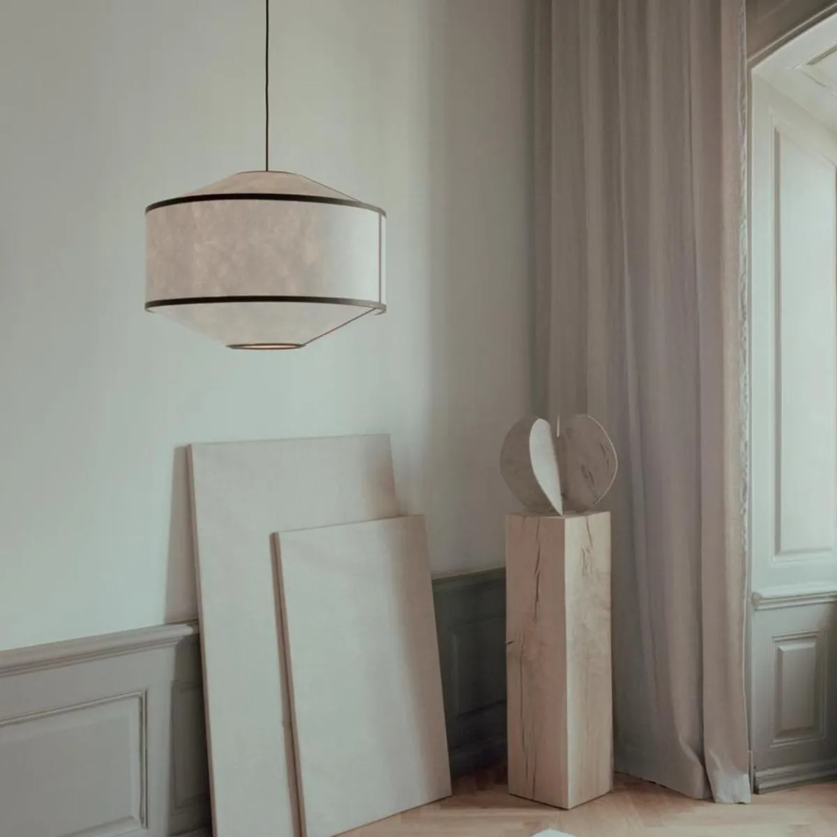 Delikate kantbånd konturerer silhuettene, et teknisk raffinement som beriker lampene med dybde og kontrast.
