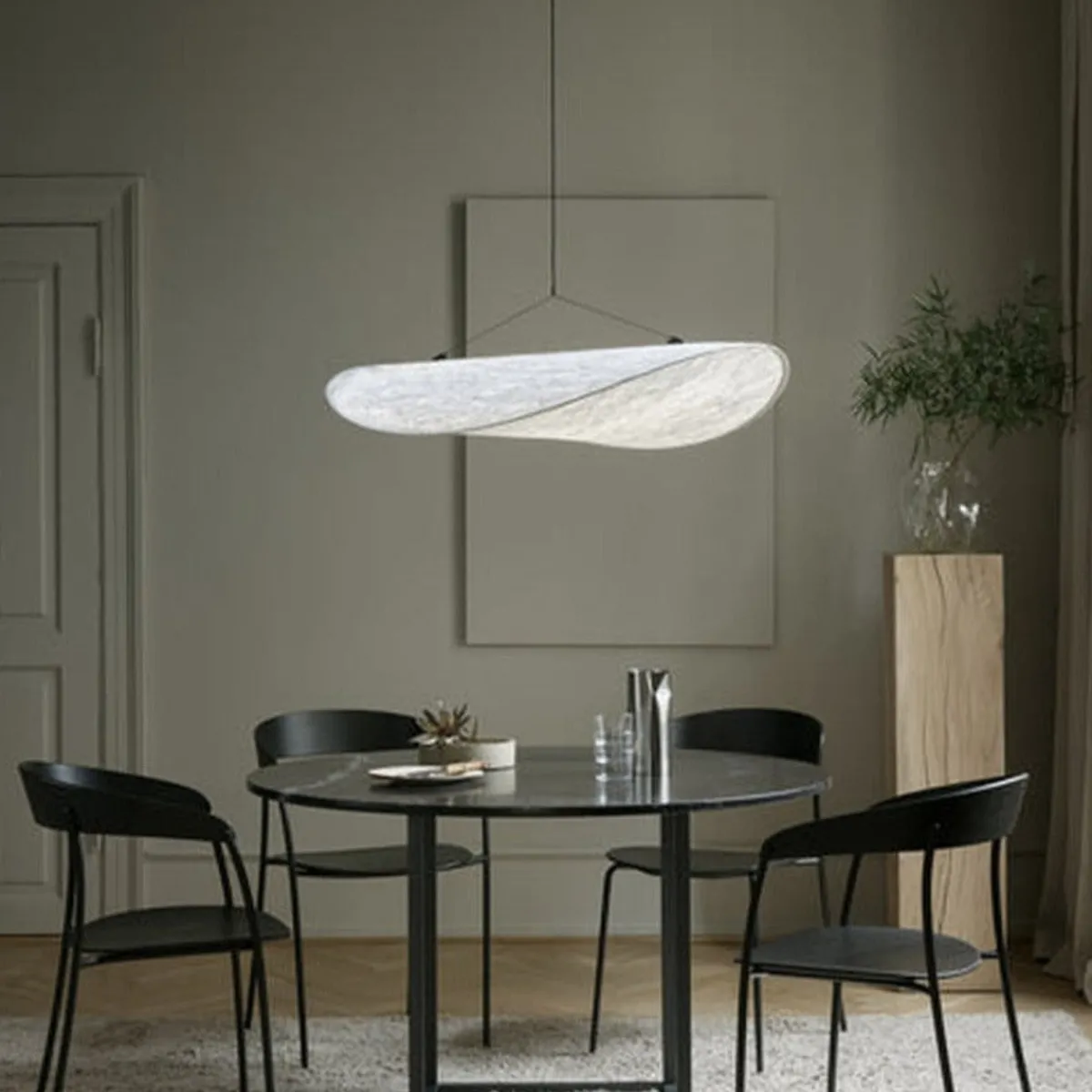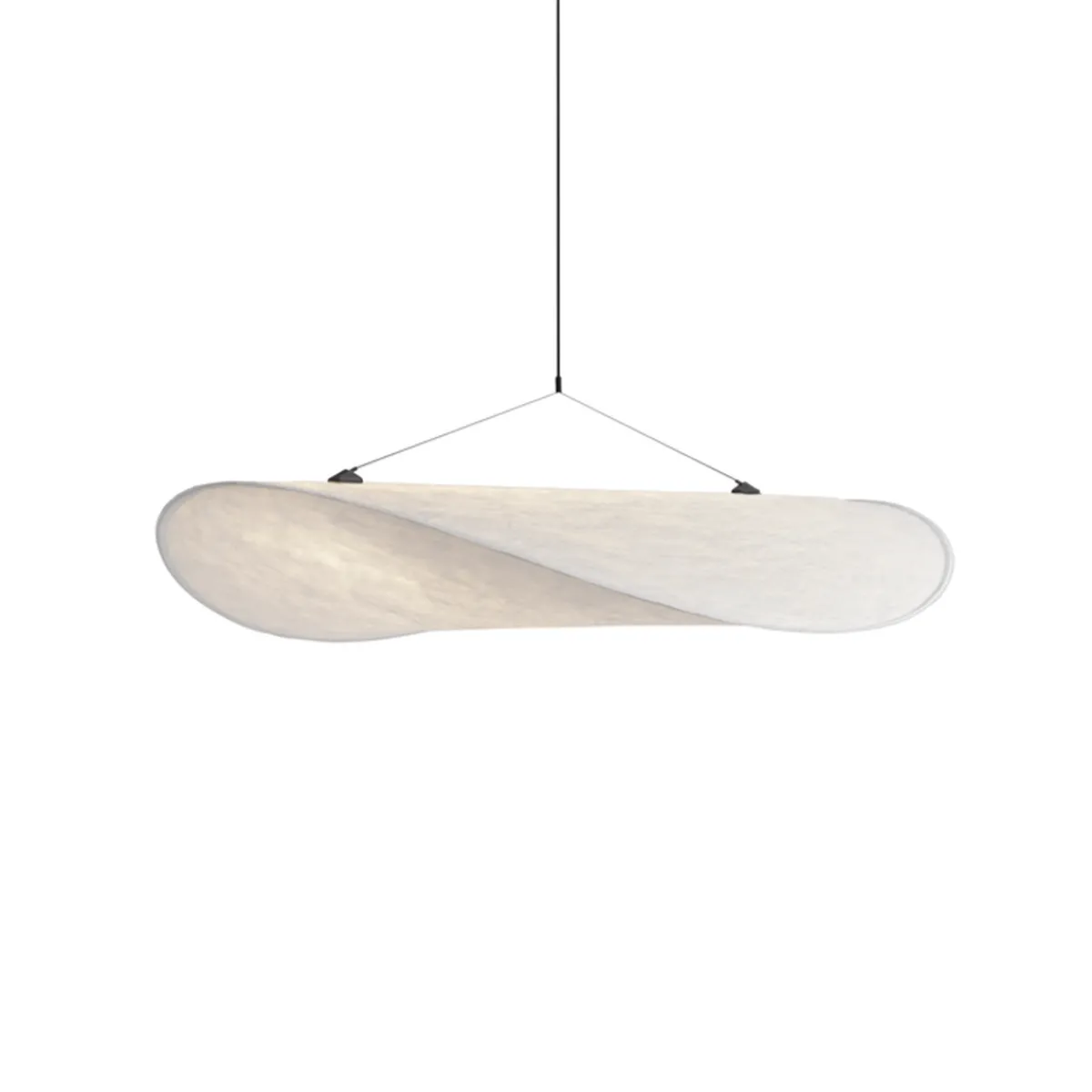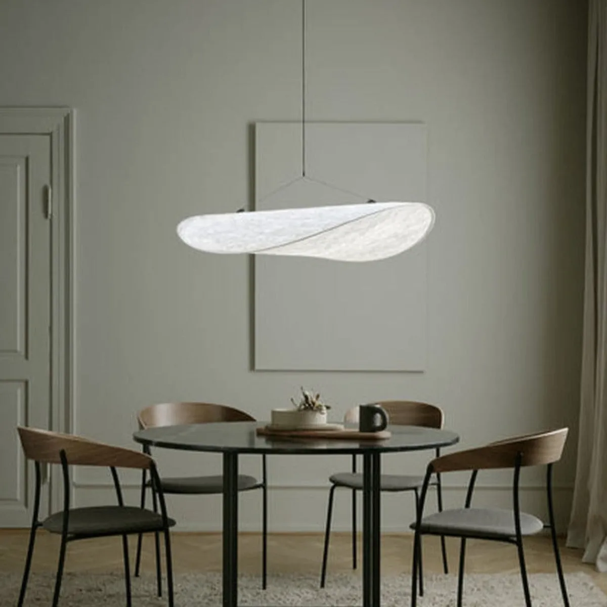 Tense Taklampe ser ut som en myk sky og skaper et spennende og lunt uttrykk til rommet. Taklampen er laget i materialet Tyvek, som er både slitesterkt og mykt. I tillegg er det 100% resirkulerbart. Lampens fleksibilitet gjør at den slanke rammen fremhever det skylignende uttrykket . Fullført med en slank LED-lyskilde, passer alle komponentene i et rør for enkel transport. En virkelig moderne tilnærming til belysning.