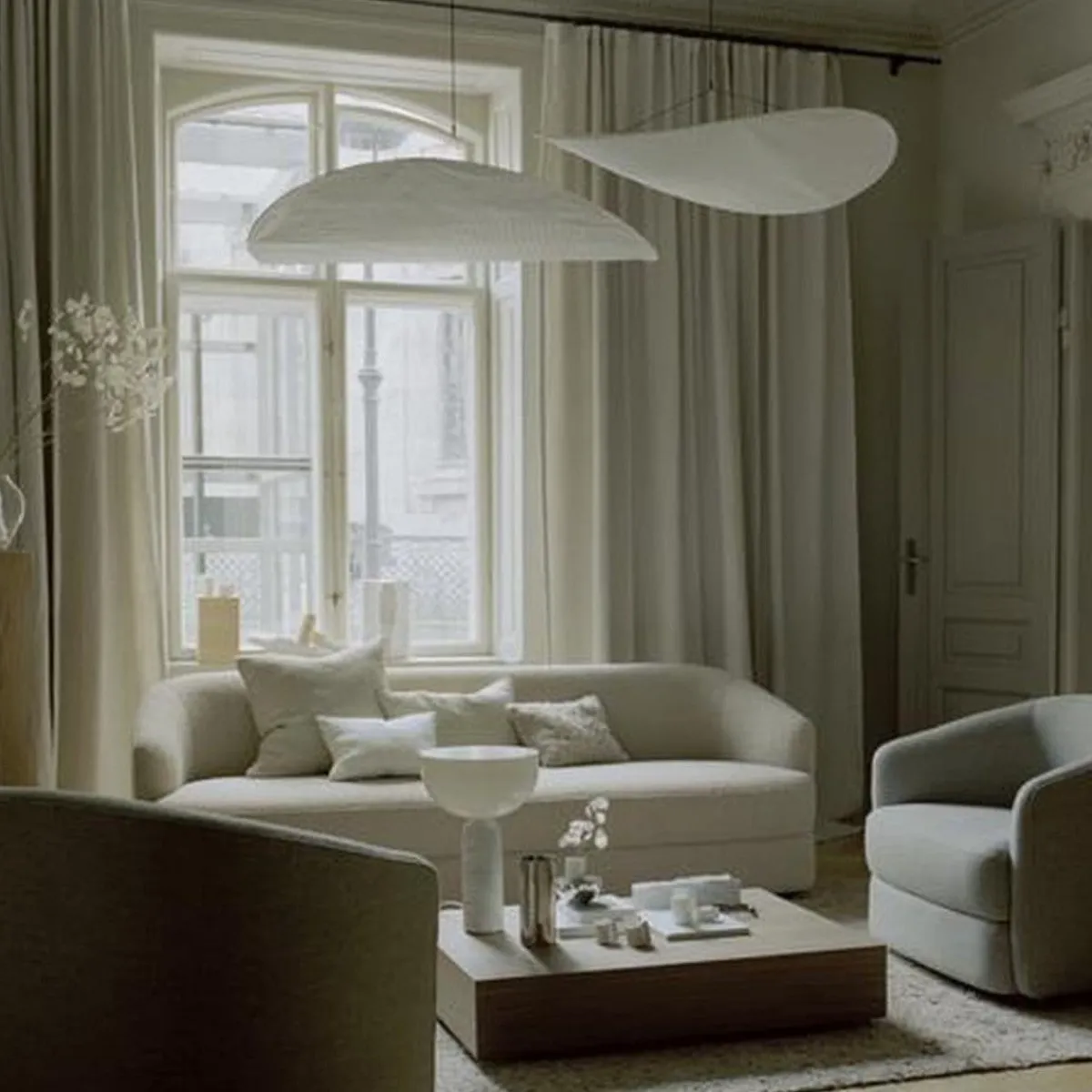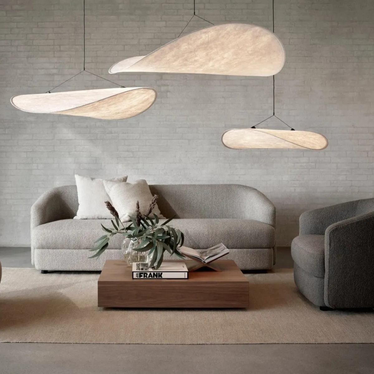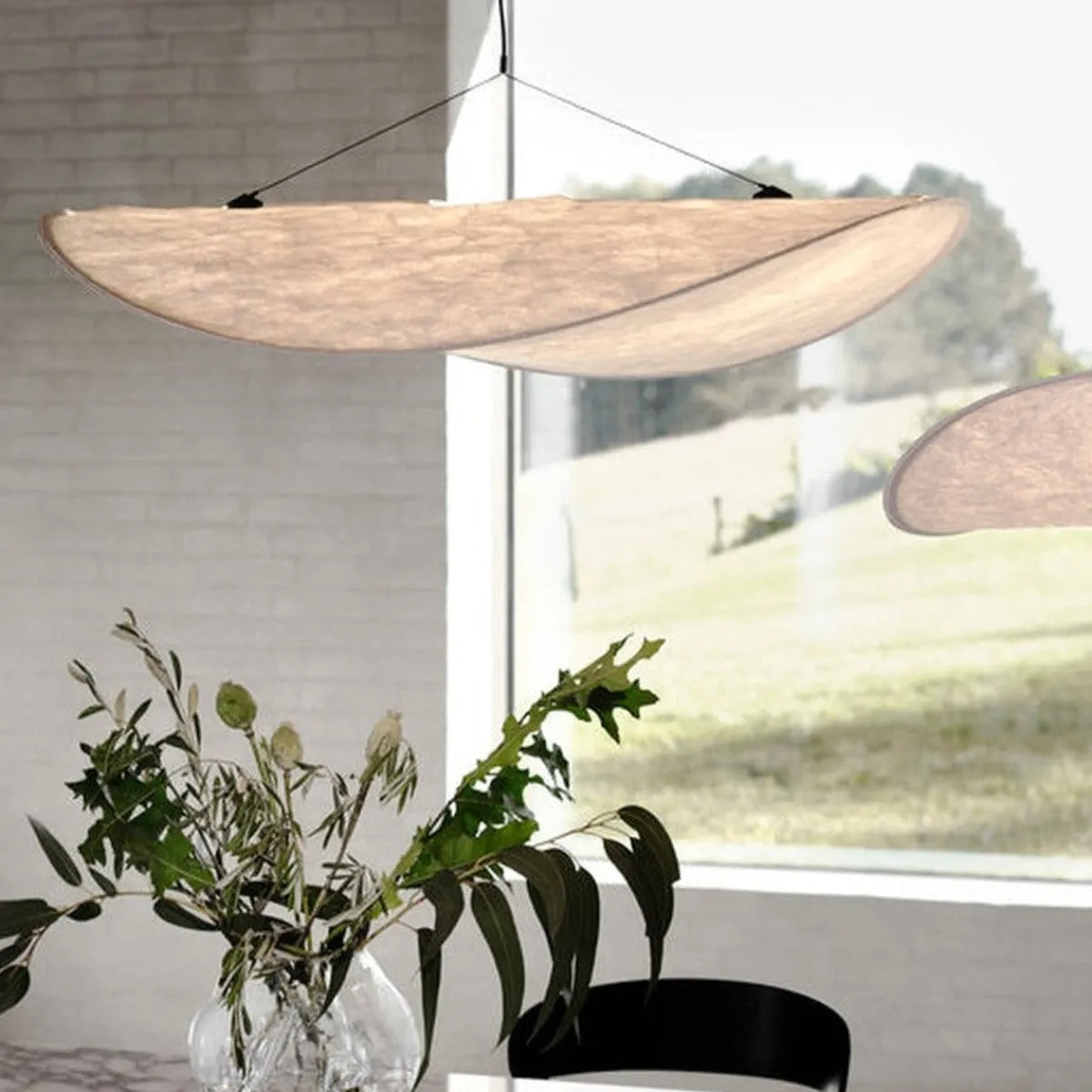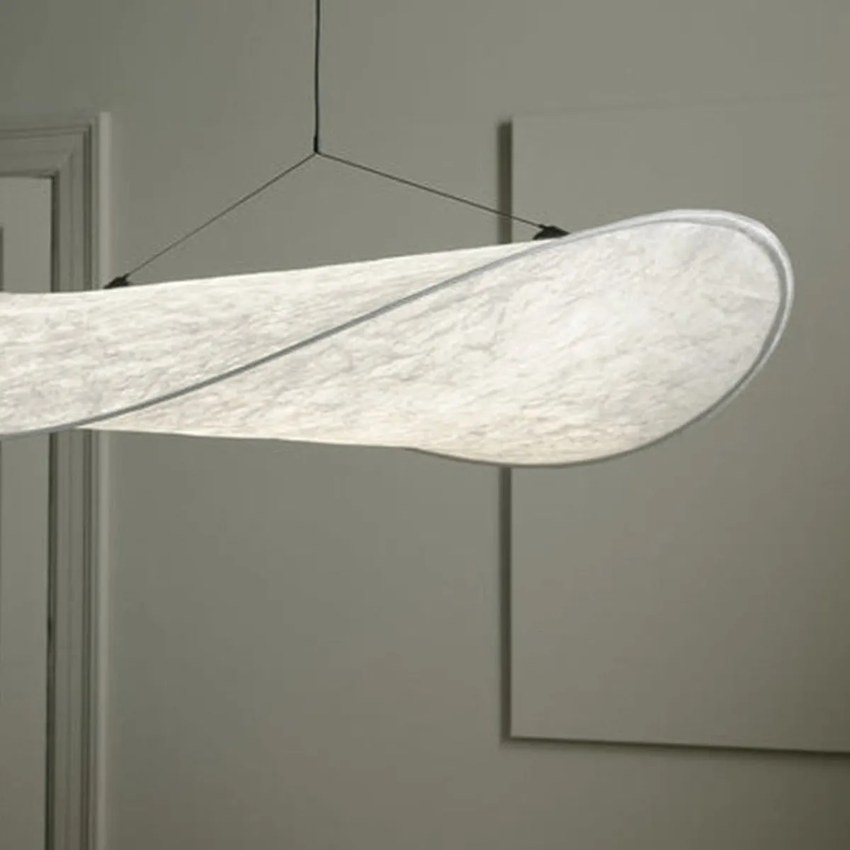 Tense Taklampe ser ut som en myk sky og skaper et spennende og lunt uttrykk til rommet. Taklampen er laget i materialet Tyvek, som er både slitesterkt og mykt. I tillegg er det 100% resirkulerbart. Lampens fleksibilitet gjør at den slanke rammen fremhever det skylignende uttrykket . Fullført med en slank LED-lyskilde, passer alle komponentene i et rør for enkel transport. En virkelig moderne tilnærming til belysning.