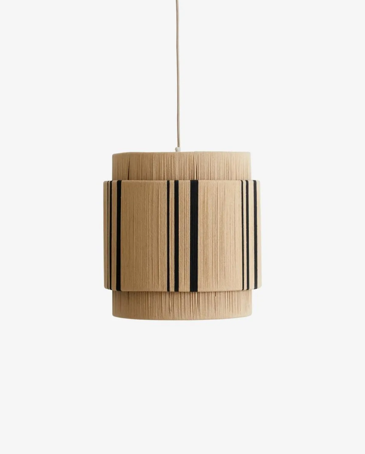 VINATA lampe med bomullsflett i en blanding av beige og sort. En ren og elegant lampe med et grafisk, stemningsfullt design. Med en myk form og varm farge, er VINATA en stilig lampe som vil skape en hyggelig atmosfære i ethvert interiør. VINATA bringer en behagelig atmosfære til rommet med sitt myke og fokuserte lys. Bruk VINATA på forskjellige steder rundt i hjemmet ditt, for eksempel til praktisk belysning i gangen, eller kombiner flere VINATA-lamper for et mer voluminøst, dekorativt utseende.