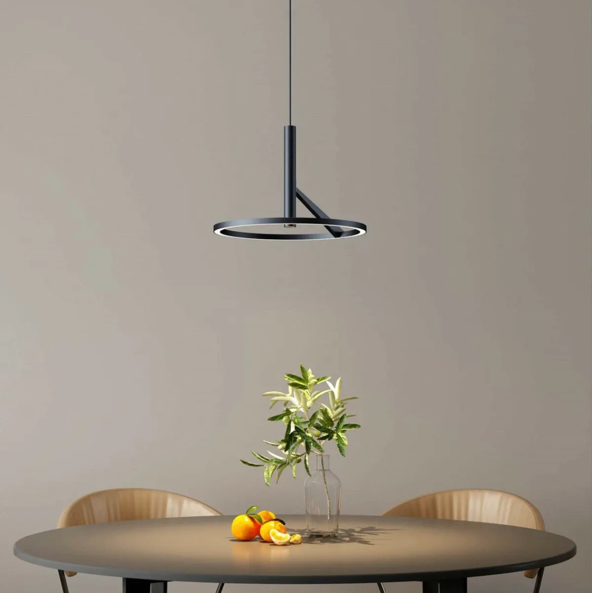 Dekorativ pendel med direkte lys i ringen og spotlys fra tuben i midten. Leveres med 175cm ledning, hvor høyden enkelt kan reguleres før og etter montering.