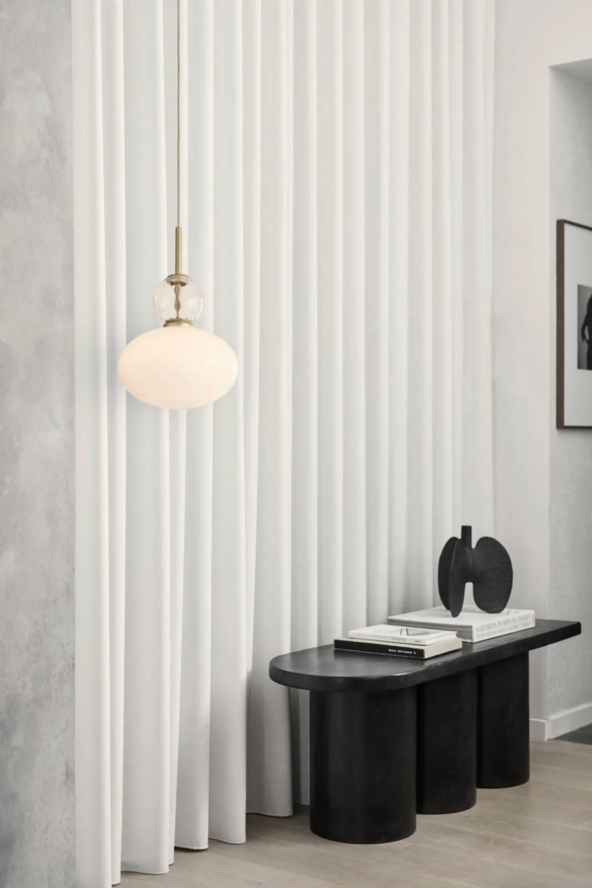 Rizzatto 32 gir et mykt og jevnt lys, noe som gjør den ideell over et spisebord eller en sofa. Takpendelen er også egnet for soverommet eller gangen. Anhenget er høydejusterbart.