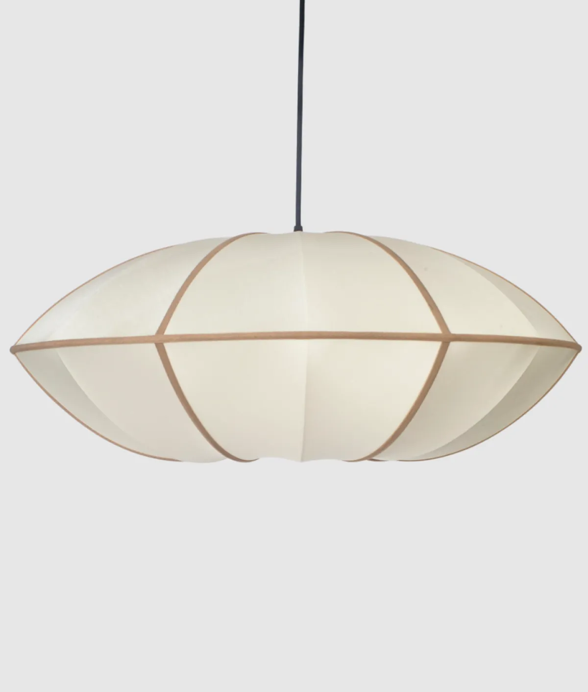 Oi Soi Oi lager noen av de vakreste taklampene vi har sett. Disse silkeskjermene kommer i forskjellige størrelser, fasonger og farger. De henger fint alene og er fine i gruppe av flere.