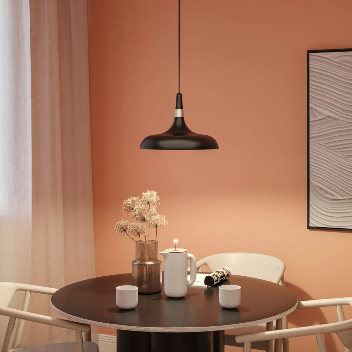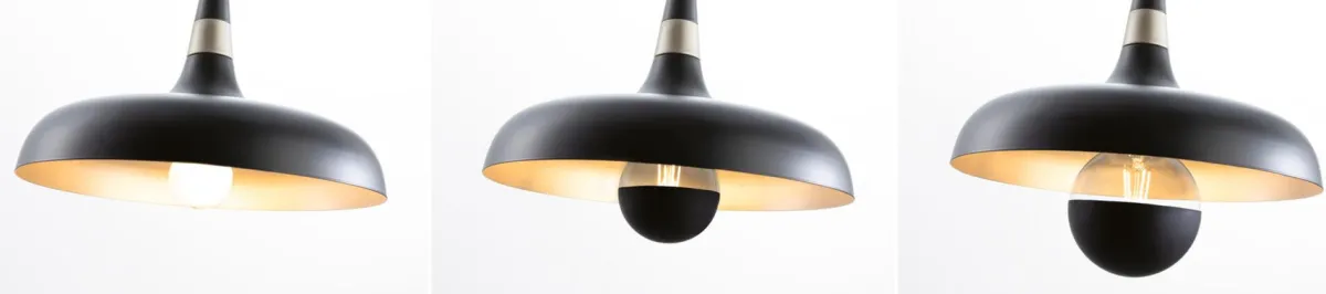 Juna-armaturserien presenteres i et tidløst, men moderne formspråk, noe som gjør dem til et perfekt valg for ulike interiørstiler, samtidig som de skaper attraktive lysaksenter i ethvert oppholdsrom. De matchende bord-, gulv- og pendelarmaturene i denne serien tilbyr mange kombinasjonsmuligheter. Pendelarmaturen i matt sort med lekre champagne-gull-aksenter er så allsidig at den kan brukes som hovedlyskilde over spisebordet eller over kjøkkenbenken. Den førsteklasses finishen på denne armaturen sikrer et attraktivt utseende og lang levetid. En dekorativ kronespeillampe med E27-sokkel vil være vår anbefaling for denne armaturen for å sikre blendfritt lys.