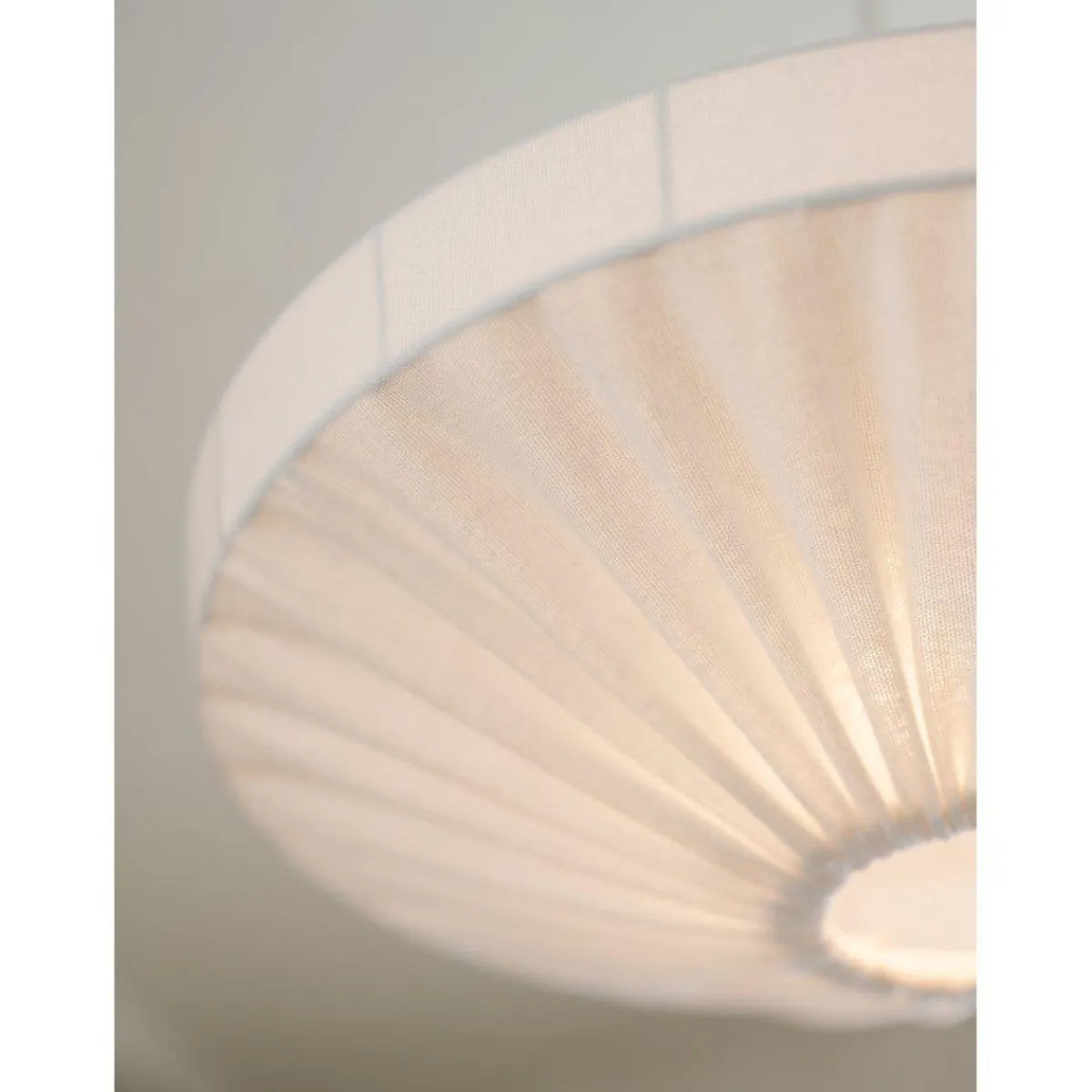 Takpendel Edith er en moderne skandinavisk «ufo»-modell i bomullsstoffet Franza, som skaper et mykt og jevnt lys i nesten alle rom. Lampen er fin å bruke i stue, på soverom, i gang og på barnerom. Lampeskjermen er håndlaget i EU. Hvitt takoppheng med takkopp medfølger