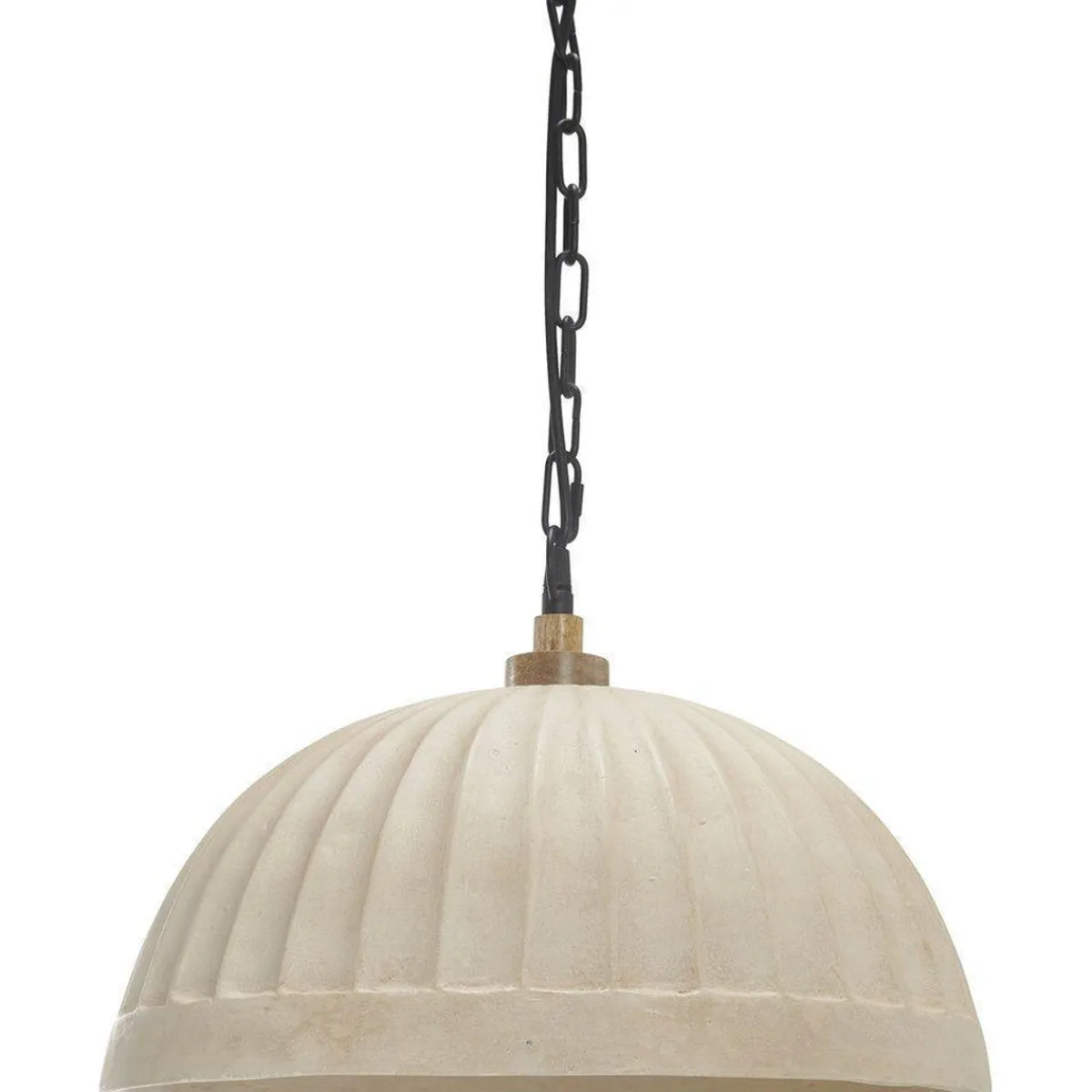 Lampen har en klassisk form med brede riller og en glatt kant nederst.