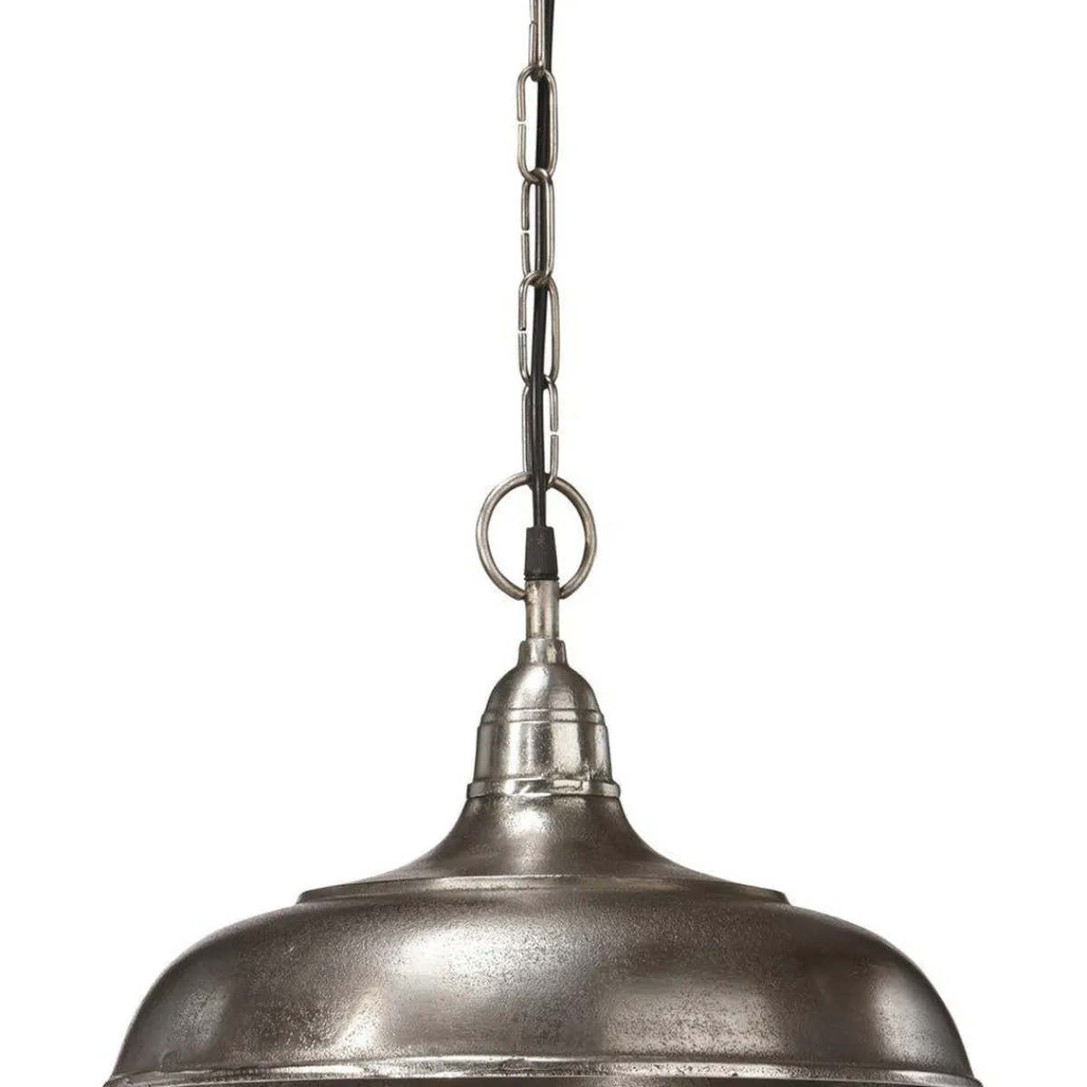 Philadelphia er en stilig og klassisk taklampe i metall. Taklampen har en 1,2 meter lang lenke i råsølv og en takkopp i samme farge.