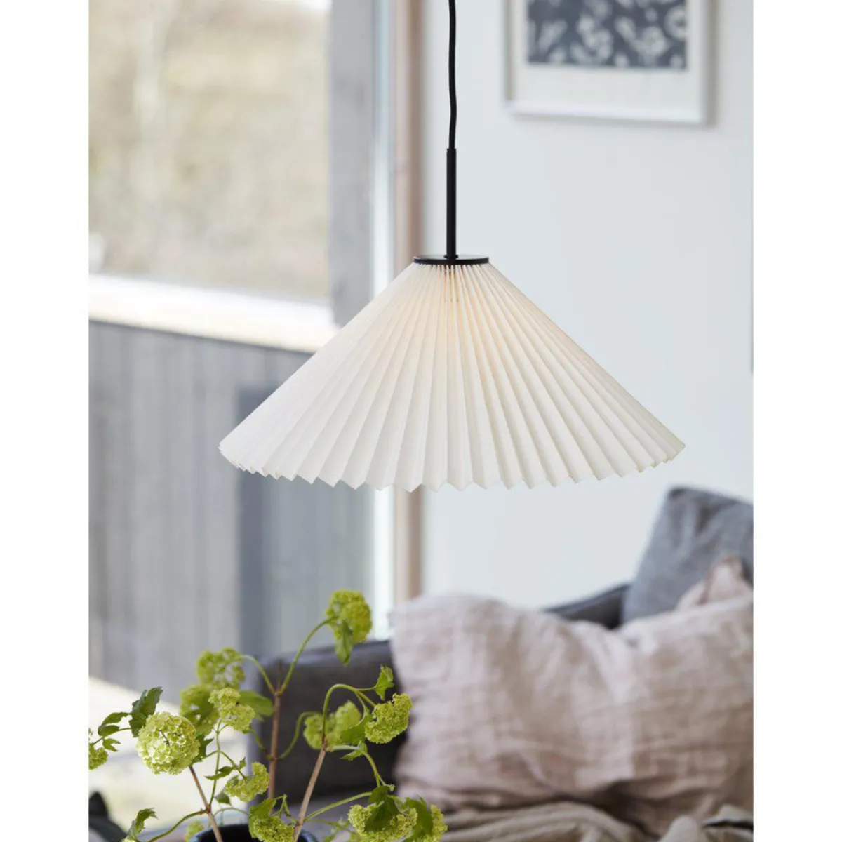 Polly Taklampe i brettet papir. Papiret har en matt overflate og en tykkelse på 230 gram, noe som gir fine og tydelige folder.