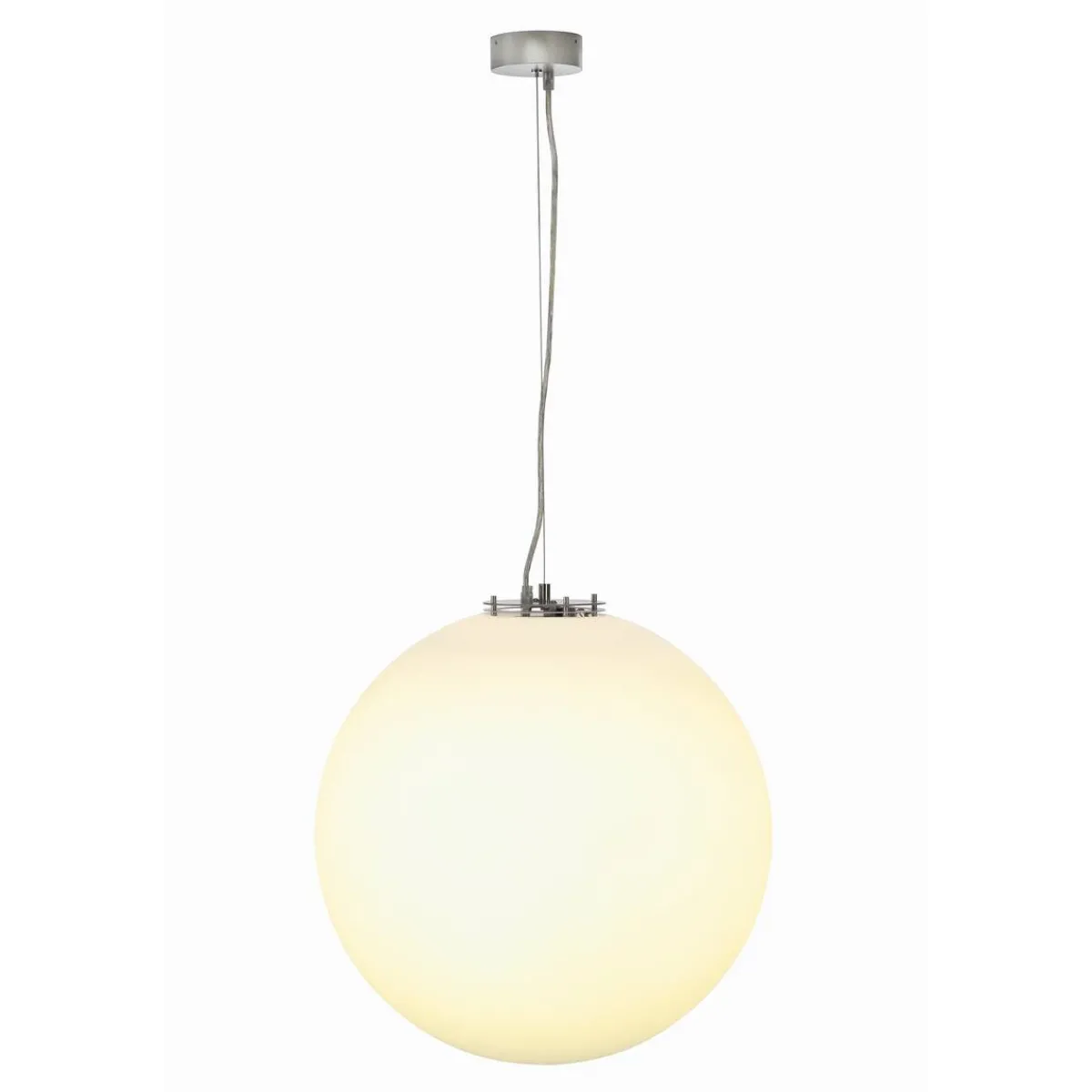 ROTOBALL 50 er en kuleformet 230V pendelarmatur og består av en armaturskjerm i temperaturbestandig plast som er rammet inn av en holder i sølvgrått stål. Den store armaturskjermen sørger for en jevn belysning fra sparelyskilden med vanlig E27-sokkel. En passende takrosett er inkludert i leveransen. Dermed er ROTOBALL 50 pendelarmatur klar for direkte tilkobling til 230 V nettspenning.