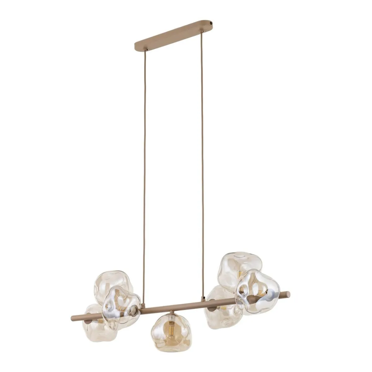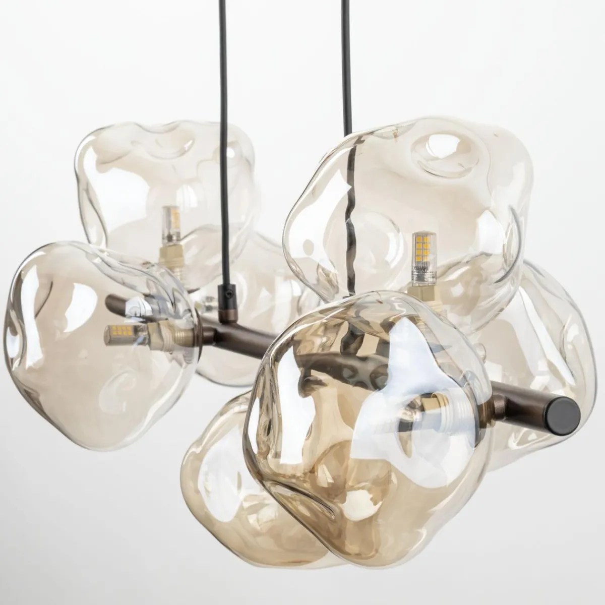 LAVA– lampefamilien kombinerer moderne design med lysets naturlige dynamikk. Inspirert av den flytende formen til størknet lava, gir de uregelmessig formede glassskjermene en unik karakter til ethvert interiør. Subtile refleksjoner og lysbrytninger skaper et effektivt spill av skygger, som tilfører rommet en atmosfære av varme og eleganse. Metallstrukturen kombinert med det unike glasset er synonymt med stil og luksus. LAVA– kolleksjonen inkluderer ulike varianter av pendellamper – fra minimalistiske enkeltmodeller til slående flerlyskomposisjoner, perfekt for spisebord, stuer eller kommersielle rom. LAVA -belysning er et tilbud for elskere av designløsninger som verdsetter harmonien mellom lys og form.
