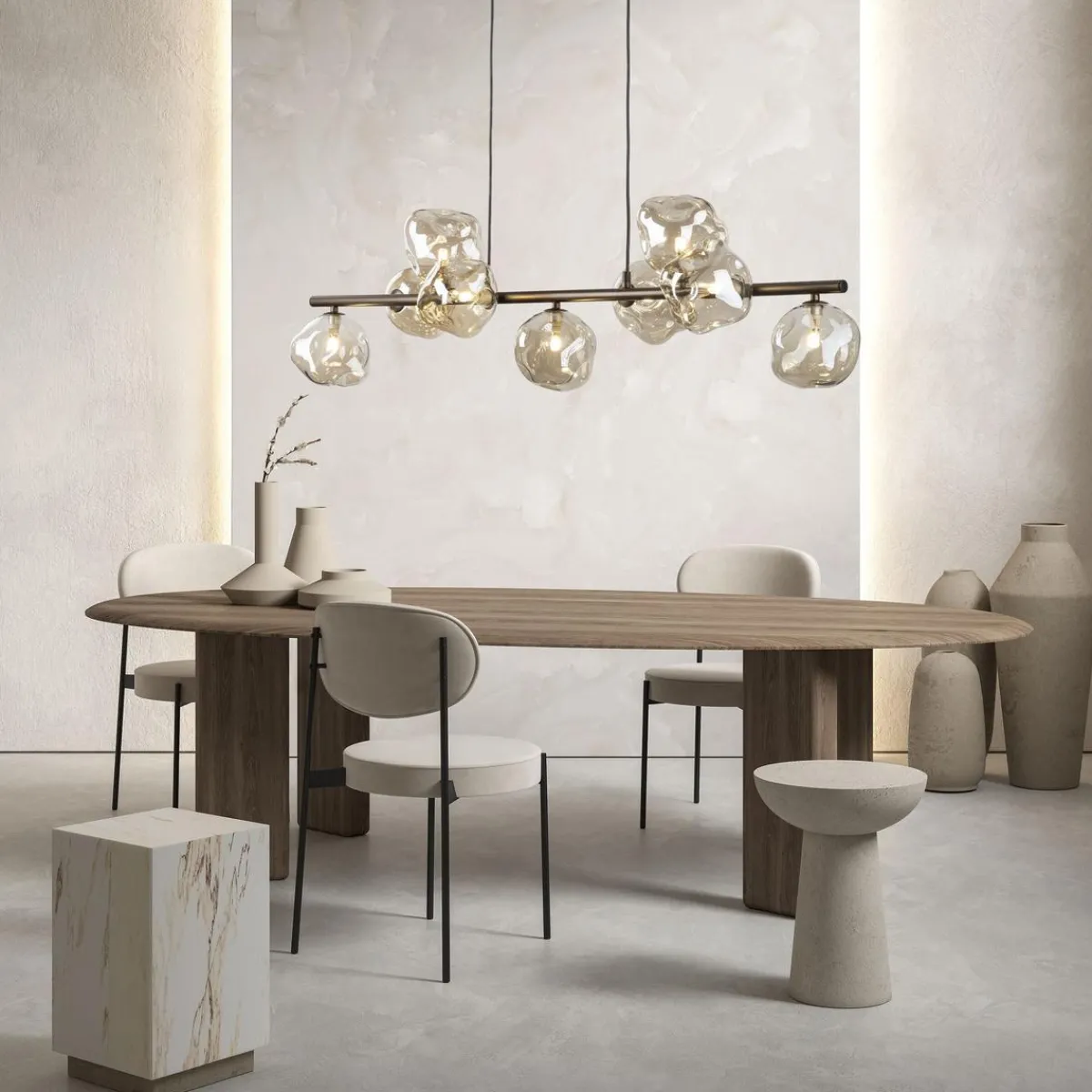 LAVA– lampefamilien kombinerer moderne design med lysets naturlige dynamikk. Inspirert av den flytende formen til størknet lava, gir de uregelmessig formede glassskjermene en unik karakter til ethvert interiør. Subtile refleksjoner og lysbrytninger skaper et effektivt spill av skygger, som tilfører rommet en atmosfære av varme og eleganse. Metallstrukturen kombinert med det unike glasset er synonymt med stil og luksus. LAVA– kolleksjonen inkluderer ulike varianter av pendellamper – fra minimalistiske enkeltmodeller til slående flerlyskomposisjoner, perfekt for spisebord, stuer eller kommersielle rom. LAVA -belysning er et tilbud for elskere av designløsninger som verdsetter harmonien mellom lys og form.