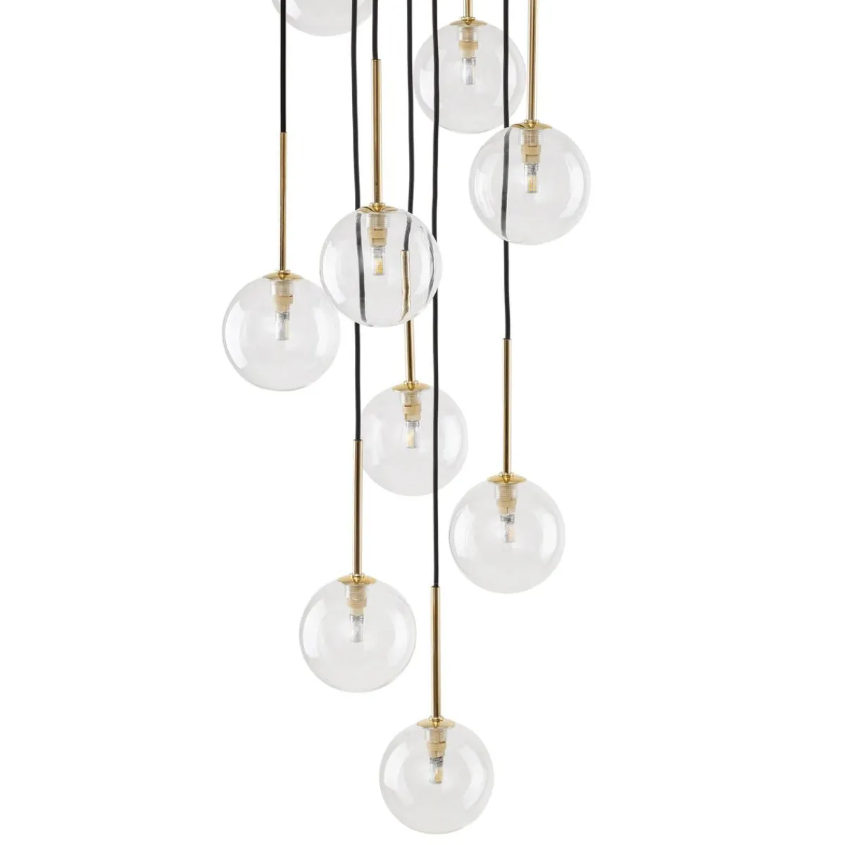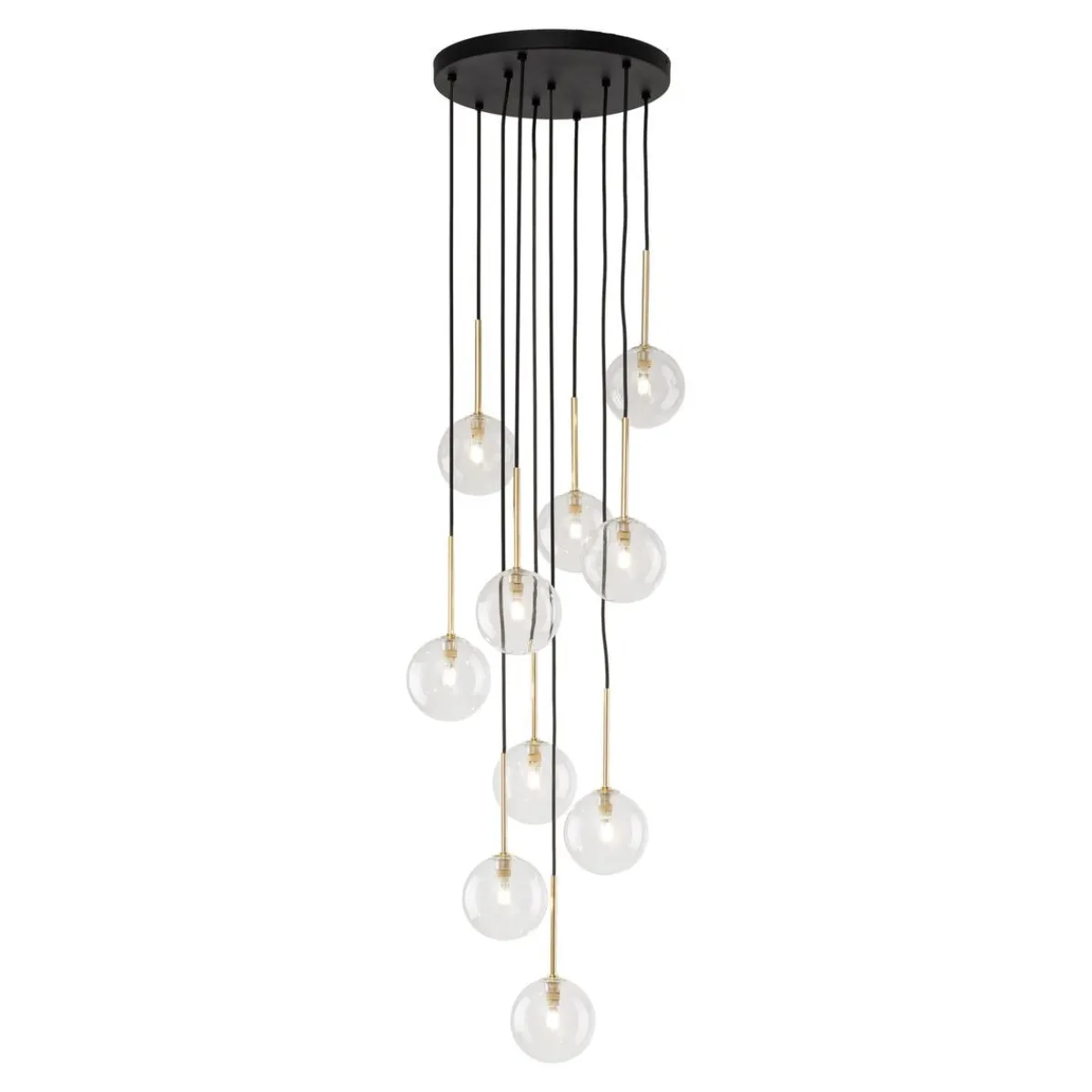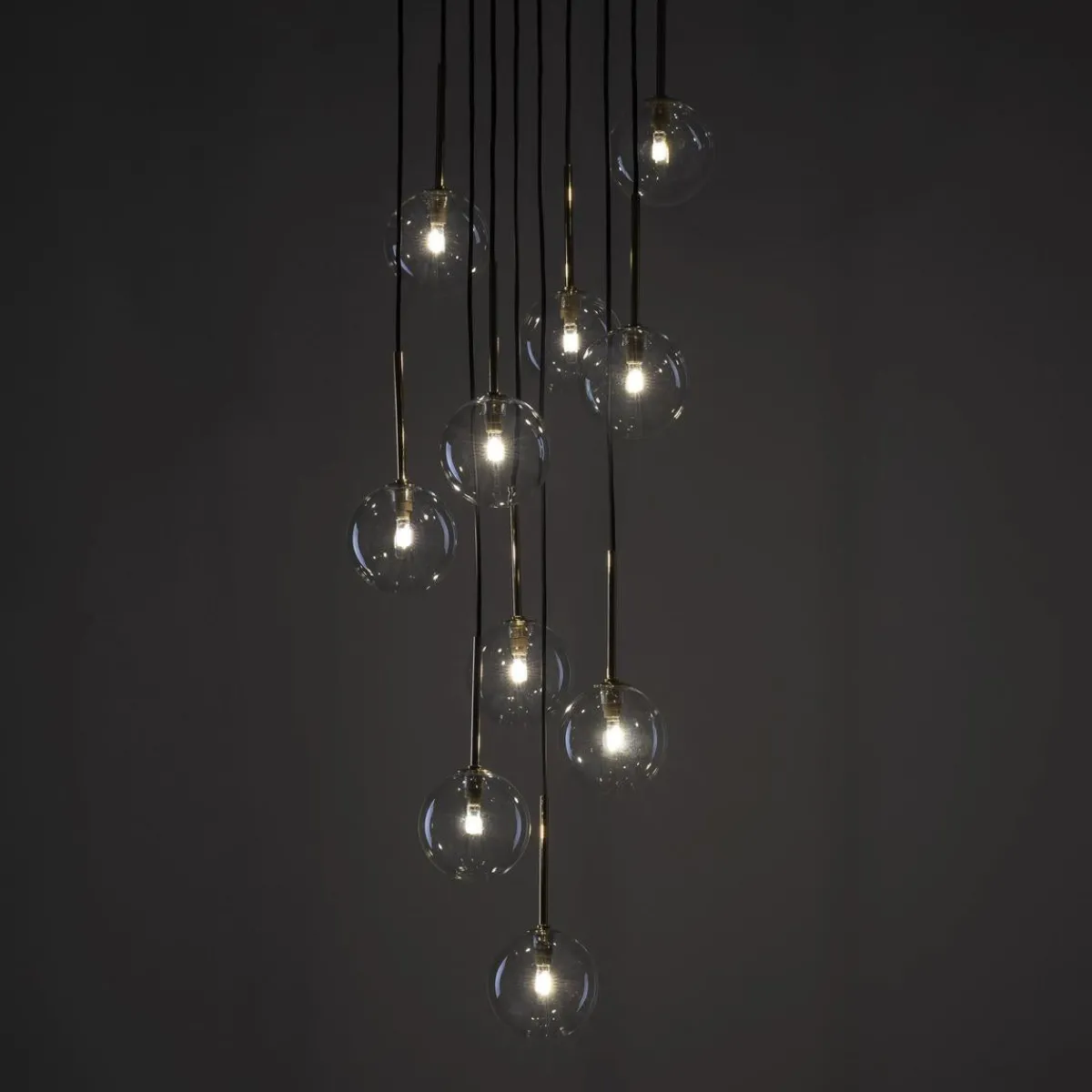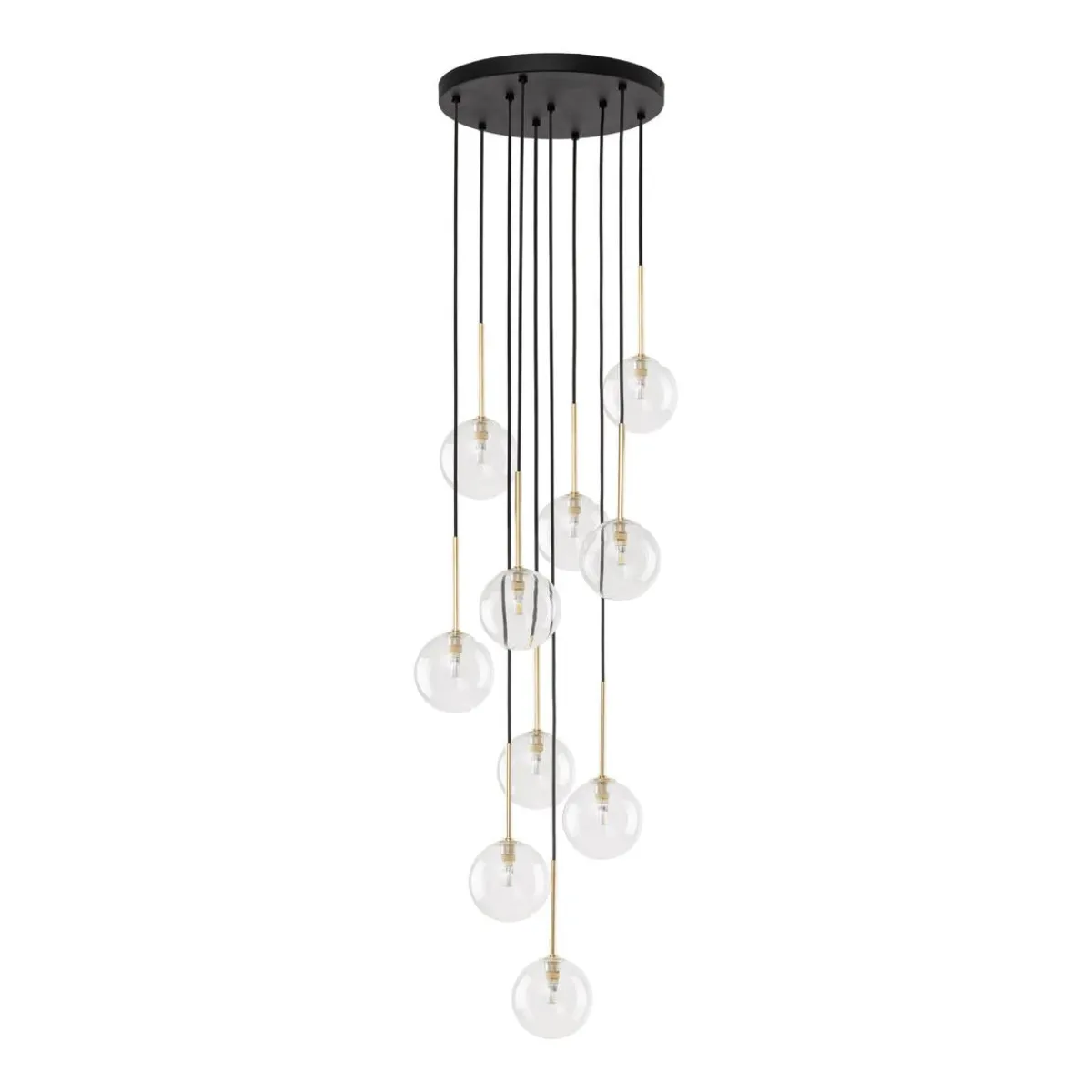 NILOS-lamper er en familie av designer-pendellamper med et moderne og elegant utseende. De er preget av gjennomsiktige glasskjermer som gir utmerket lysspredning. Hver lampe har også en gullhylse ved skjermen, som gir en luksuriøs aksent. Høyden på lampene kan justeres etter dine preferanser, da pendlene med lampeskjermer skaper kaskader av forskjellige lengder. Høydejustering gir oss muligheten til å skape et unikt og individuelt utseende av interiøret vårt.