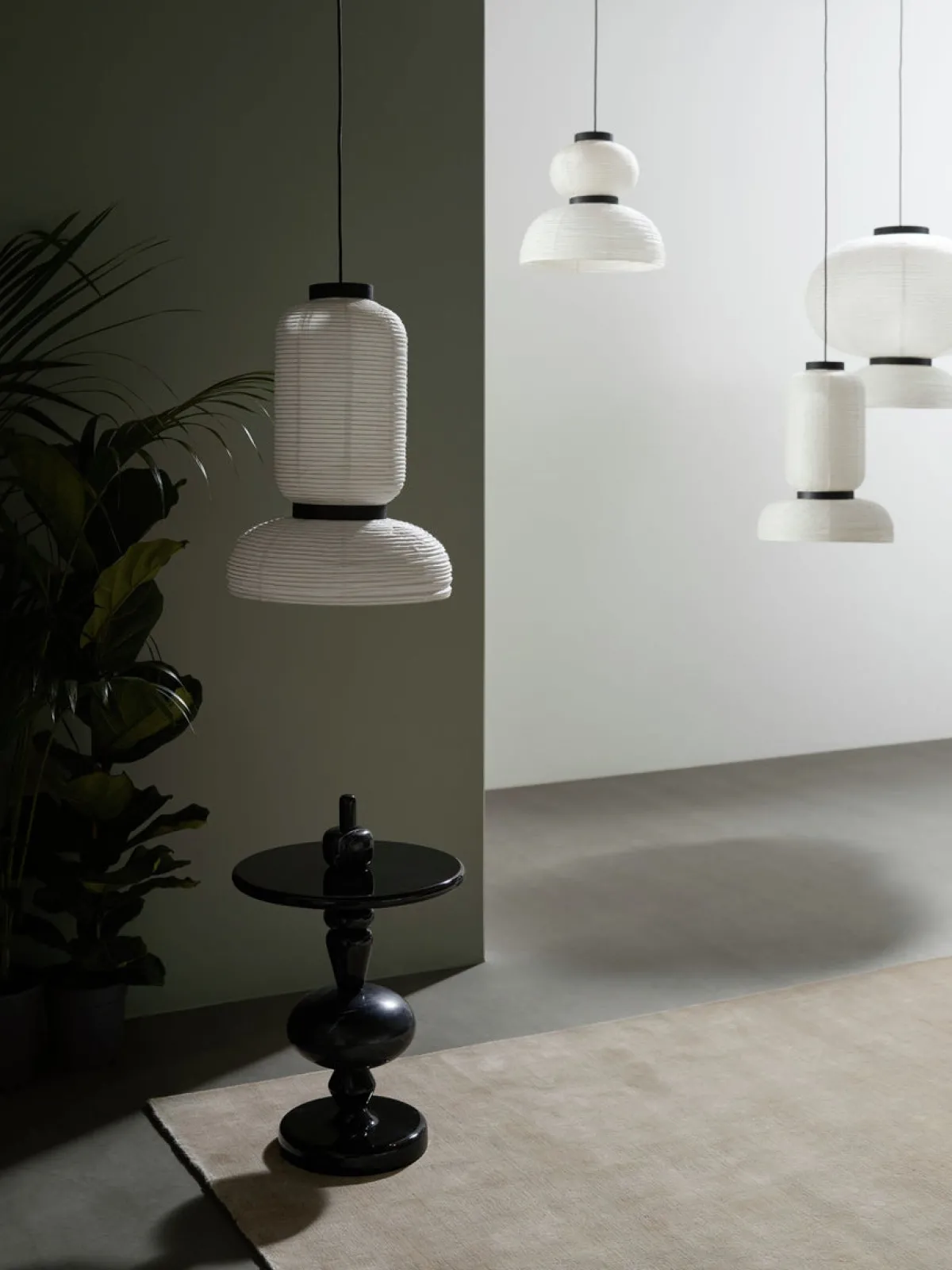 Lampen har to lyskilder, en i den øvre delen og en i den nedre delen. Det betyr at du vil få et mykt generelt lys, samt et nedadrettet lys slik at den kan passe fint som taklampe under et høyt tak, så vel som over et spisebord. Finnes i flere utførelser.