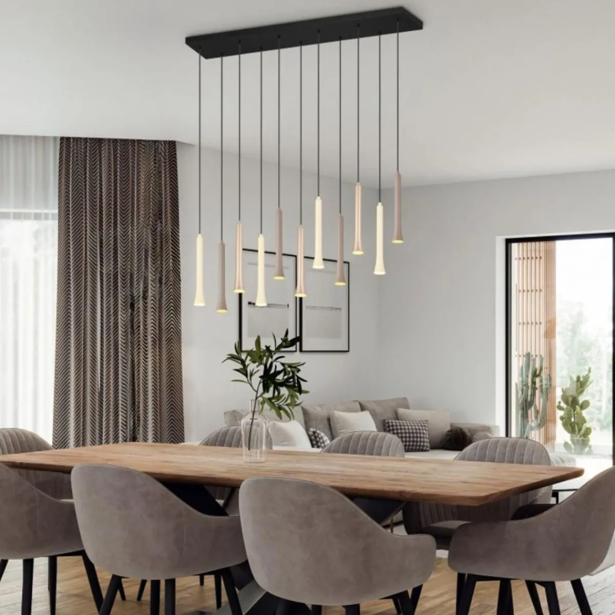 Perfekt som sentral belysning i stue, spisestue eller entré. De varme kaffe- og beige-tonene skaper en innbydende atmosfære, mens energieffektiv LED-teknologi reduserer strømforbruket med opptil 80 % sammenlignet med halogen.