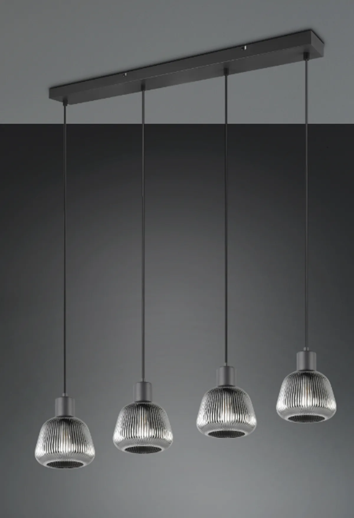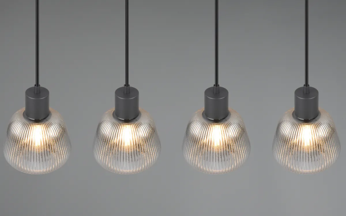 TARIFA pendellampe symboliserer retro chic og er et absolutt must-have! Dens trendy design gjør den til et høydepunkt over spisebordet eller kjøkkenbenken, mens det koselige lyset og fascinerende lyseffektene skaper en innbydende atmosfære. Det matt sorte metallet og det forkrommede glasset gir stuen din et sofistikert preg.