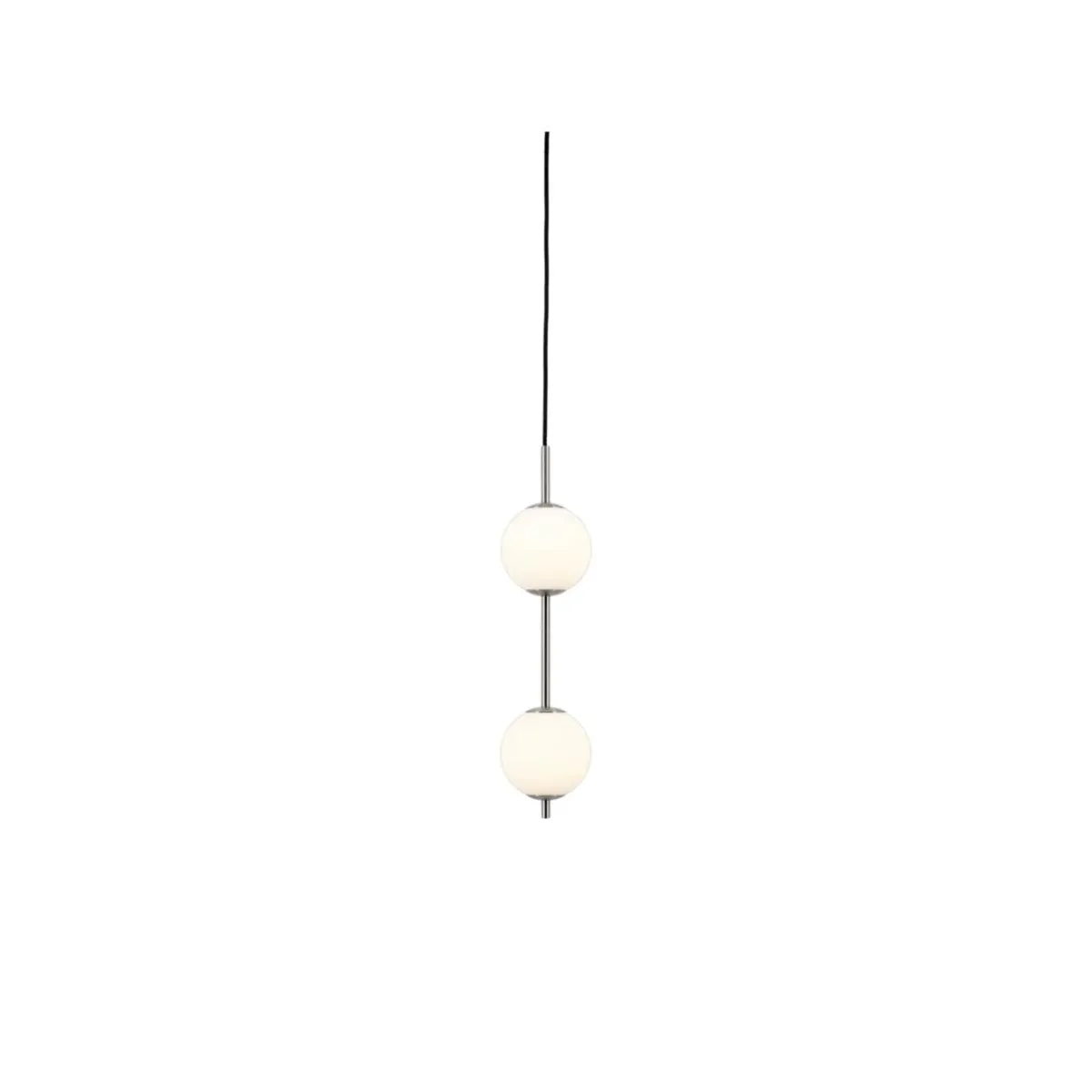 Med messingdetaljer og munnblåste opalglasskuler, utstråler Audrey en fortryllende varme som minner om lysende perler. Lampen kan dimmes med en ekstern dimmer, og de delikate kuplene sprer et behagelig lys som skaper en avslappende atmosfære.