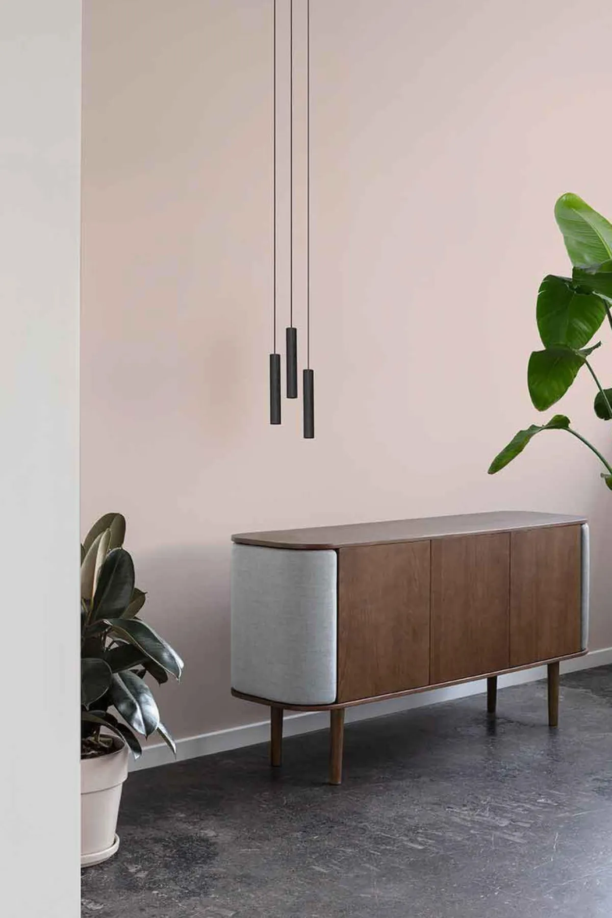 Chimes-lampen i cluster, består av tre Chimes-pendler som henger fra et sort metallfeste.