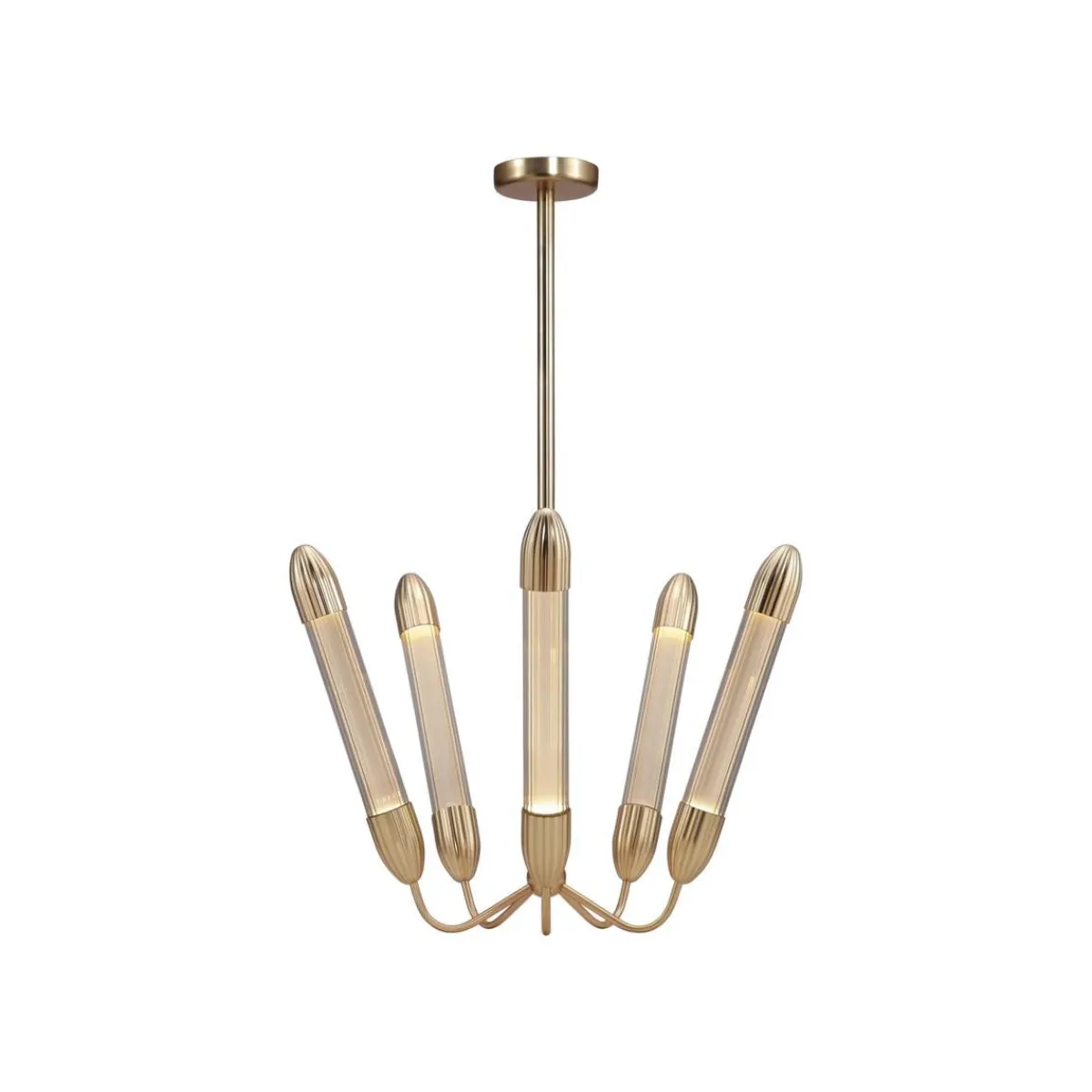 Lemon Squeeze pendellampen feirer lys og design med sitt distinkte bølgede glass, skulpturelle metallakenter og hint av lysekrone.