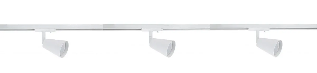 Komplett 1 meter spotskinne med 3 spotter. Lyspærer kjøpes separat med GU10 sokkel.