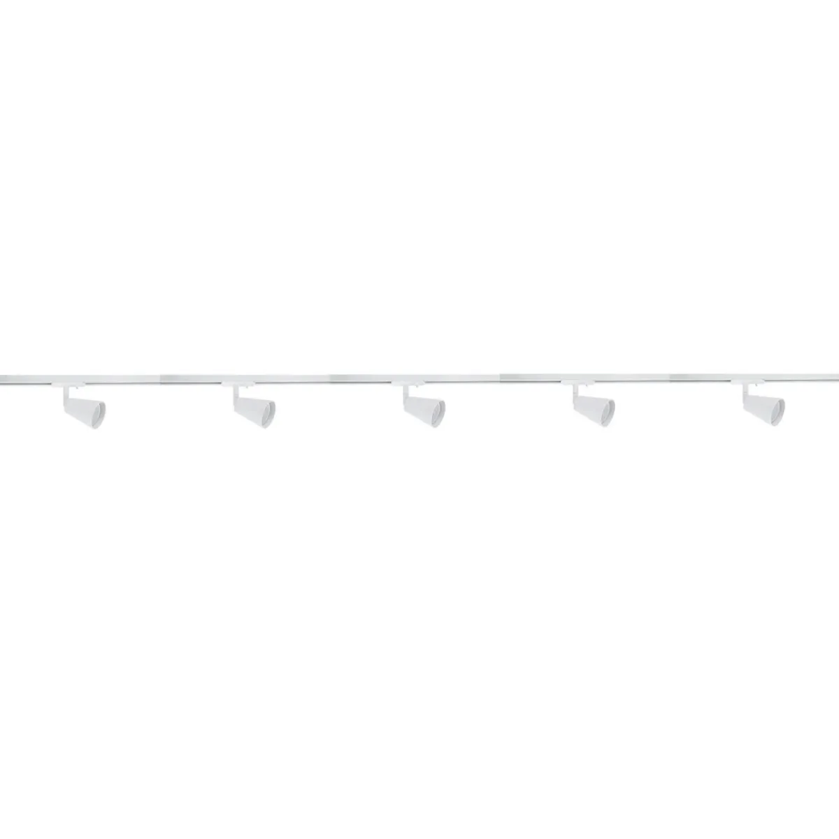 Komplett 2 meter spotskinne med 5 spotter. Lyspærer kjøpes separat med GU10 sokkel.