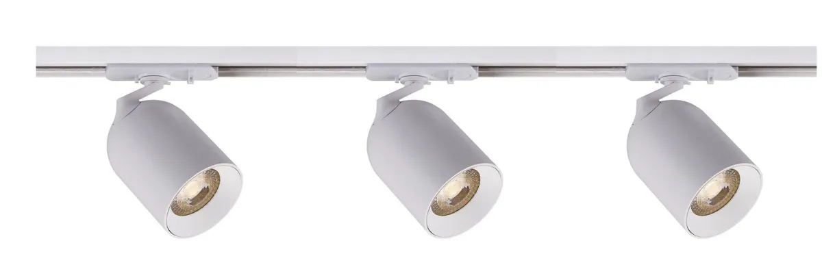 Komplett spotskinne 1 meter med 3 spotter, endestykke og tilkobling.