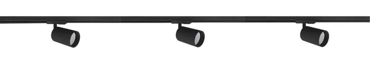 Komplett 1 meter spotskinne med 3 spotter. Lyspærer kjøpes separat med GU10 sokkel.