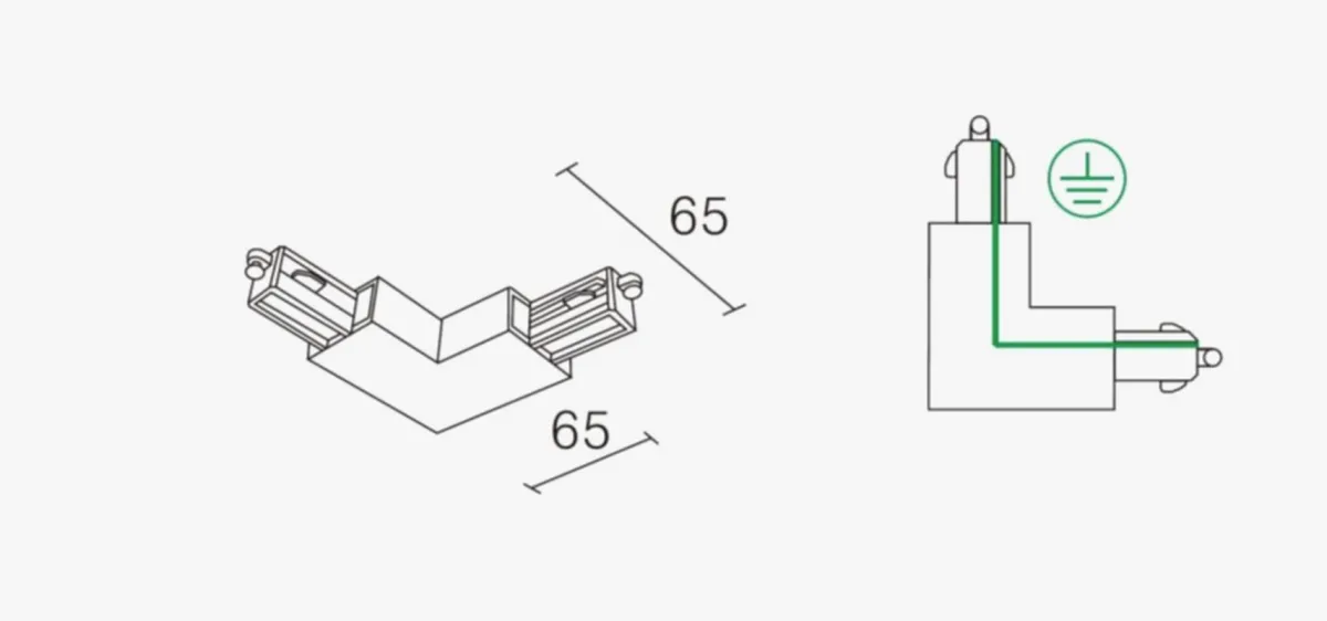 Vinkelskjøt som hører til Vox-skinnesystemet fra NorDesign.