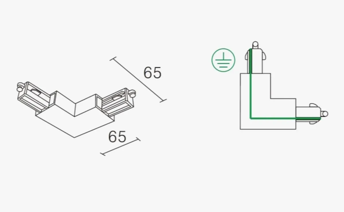 Vinkelskjøt som hører til Vox-skinnesystemet fra NorDesign.