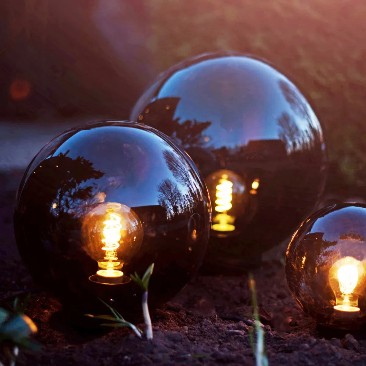 Det følger med jordfeste og vanlig bakkefeste, slik at du kan velge det festet som passer best hos deg. Hagelampen finnes i tre ulike størrelser med diameter 20, 30 og 40 cm. Kombiner gjerne ulike størrelser for å få en ekstra stilig look.