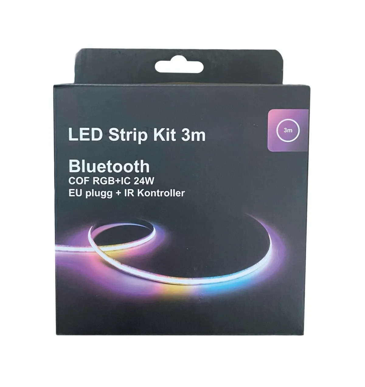 Leveres med 3m LED Strip RGB+IC. Kan styres via kontroller, fjernkontroll og bluetooth (App).