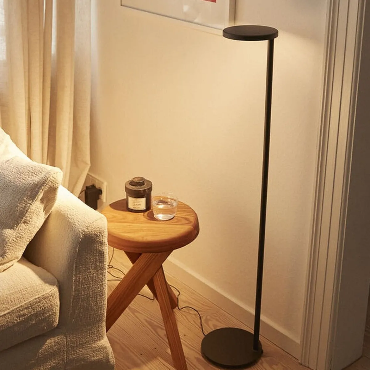 Oblique kan takket være sin innovative patenterte linse, tilby asymmetrisk lysfordeling og utmerket visuell komfort. Formen, høyden og dimensjonene samsvarer med funksjonaliteten til produktet, som gir utmerket lese belysning samtidig som lyskilden holdes usynlig for brukeren. Dette er den perfekte gulvlampen ved siden av lese stolen.