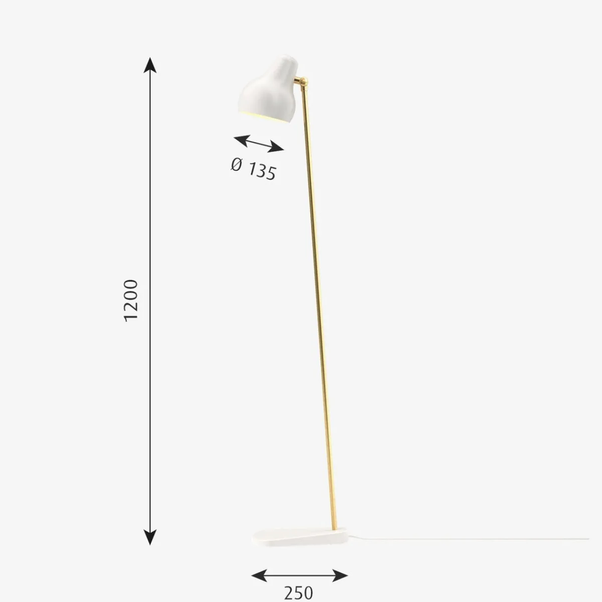 - Materiale: Bunn: Formstøpt aluminium. Skjerm: Spunnet aluminium. Stamme: Børstet messing.
